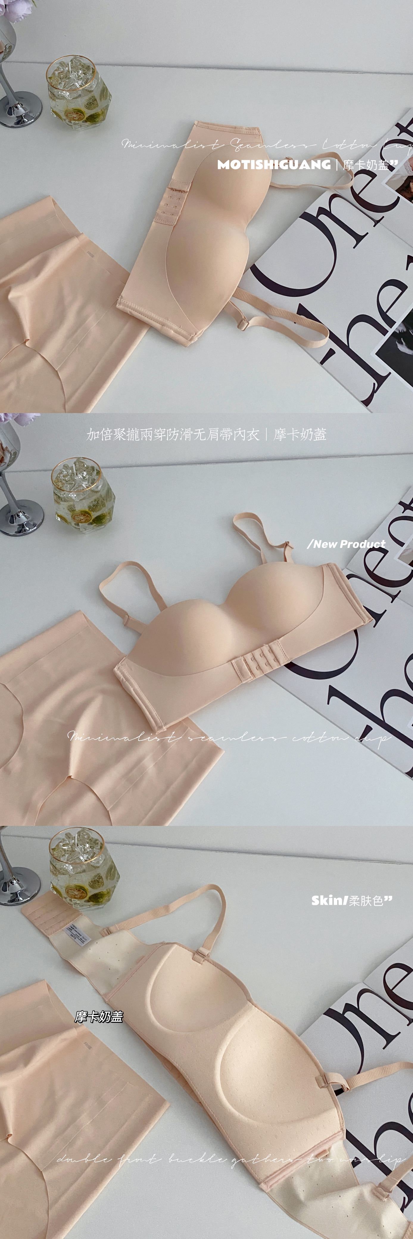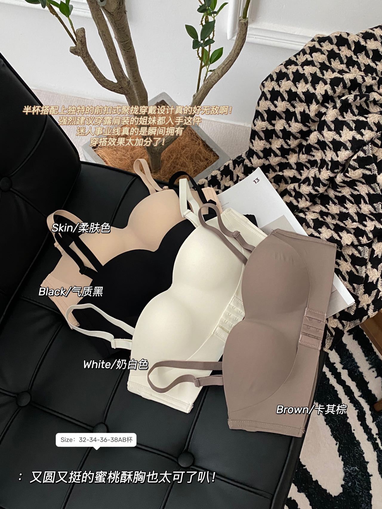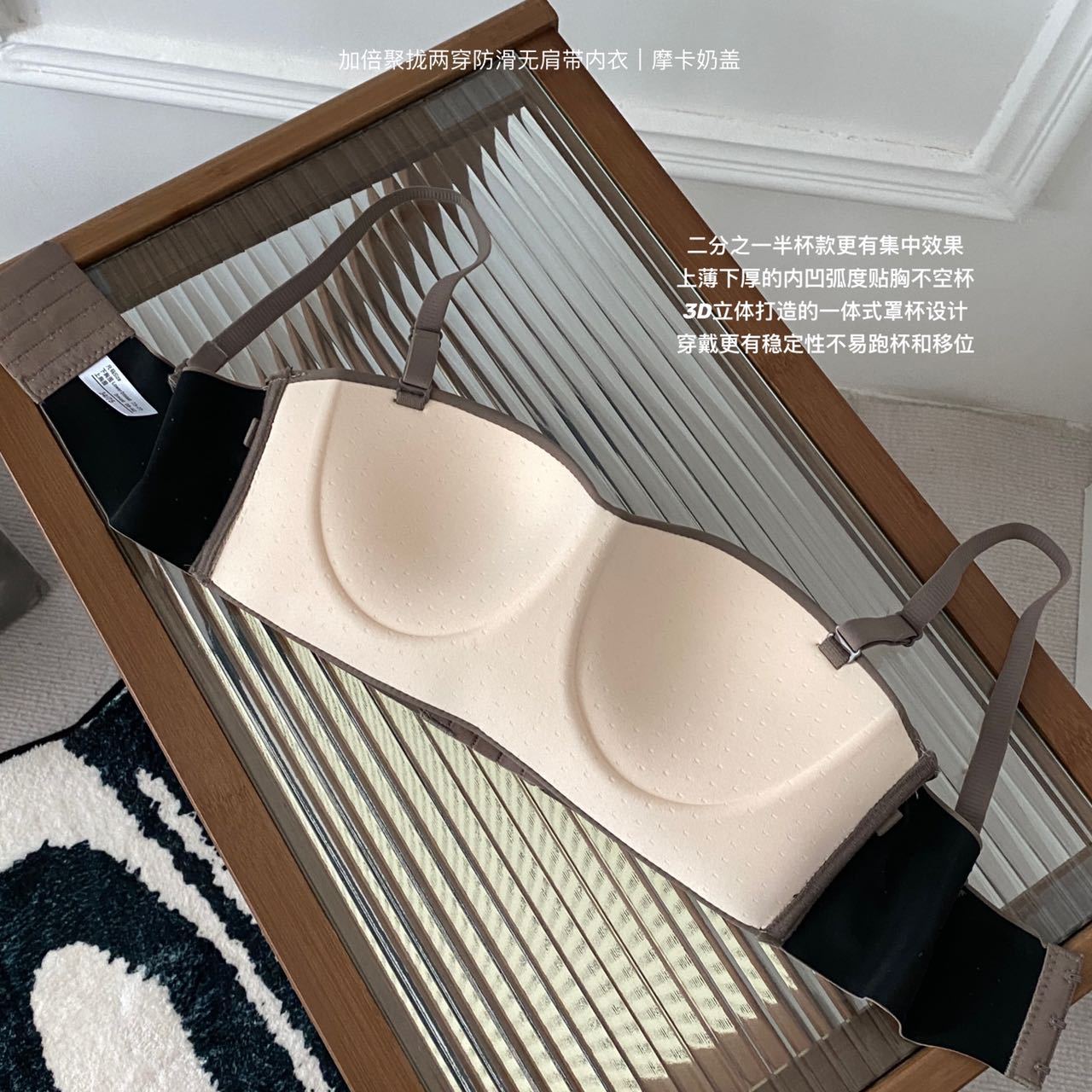【两件送两件】黛唯梵新款无肩带内衣女士小胸聚拢显大防滑半杯抹胸性感前扣无痕文胸罩