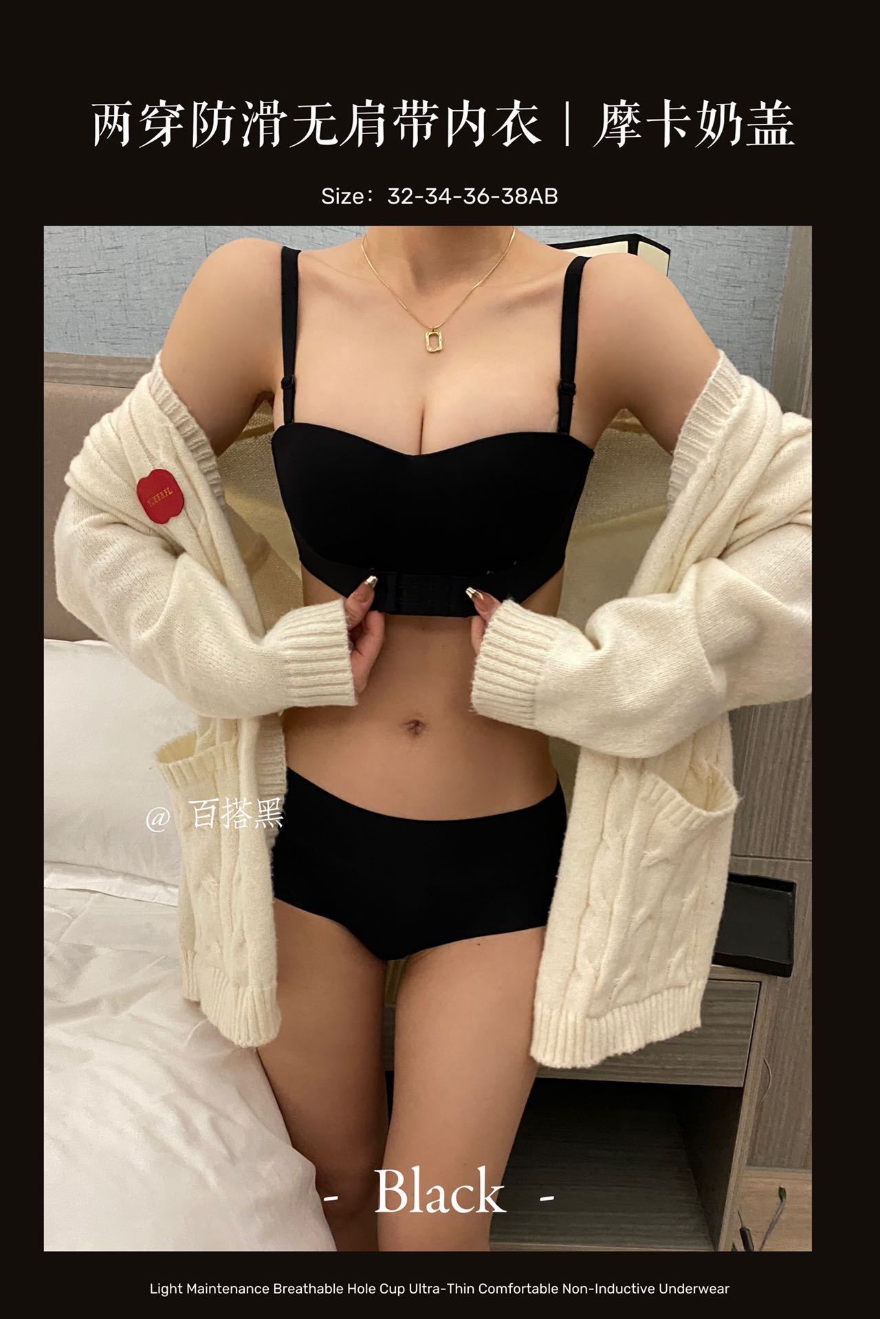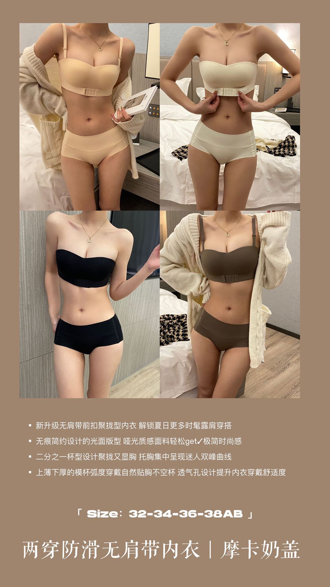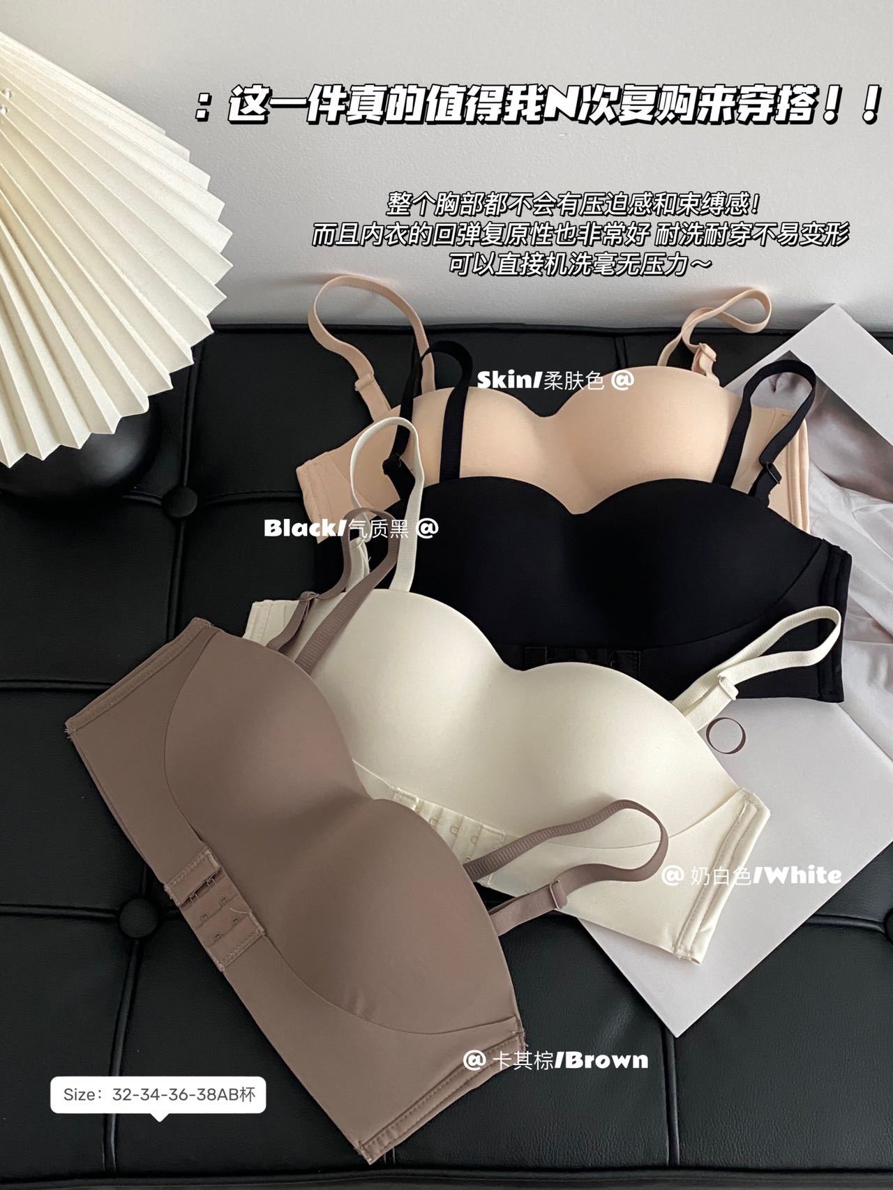 【两件送两件】黛唯梵新款无肩带内衣女士小胸聚拢显大防滑半杯抹胸性感前扣无痕文胸罩