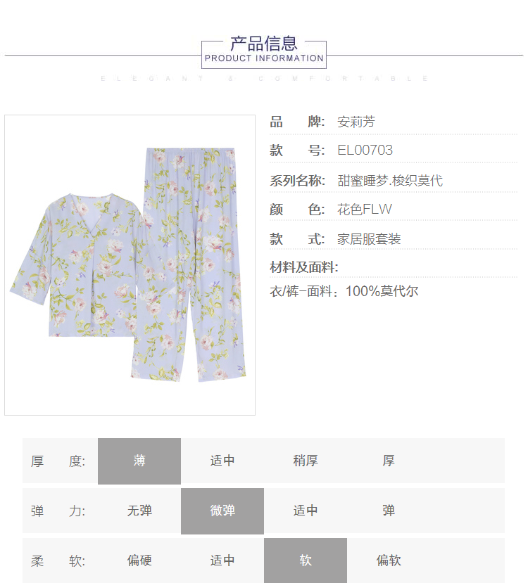 【3F】安莉芳女士家居服套装EL00703 花色FLW