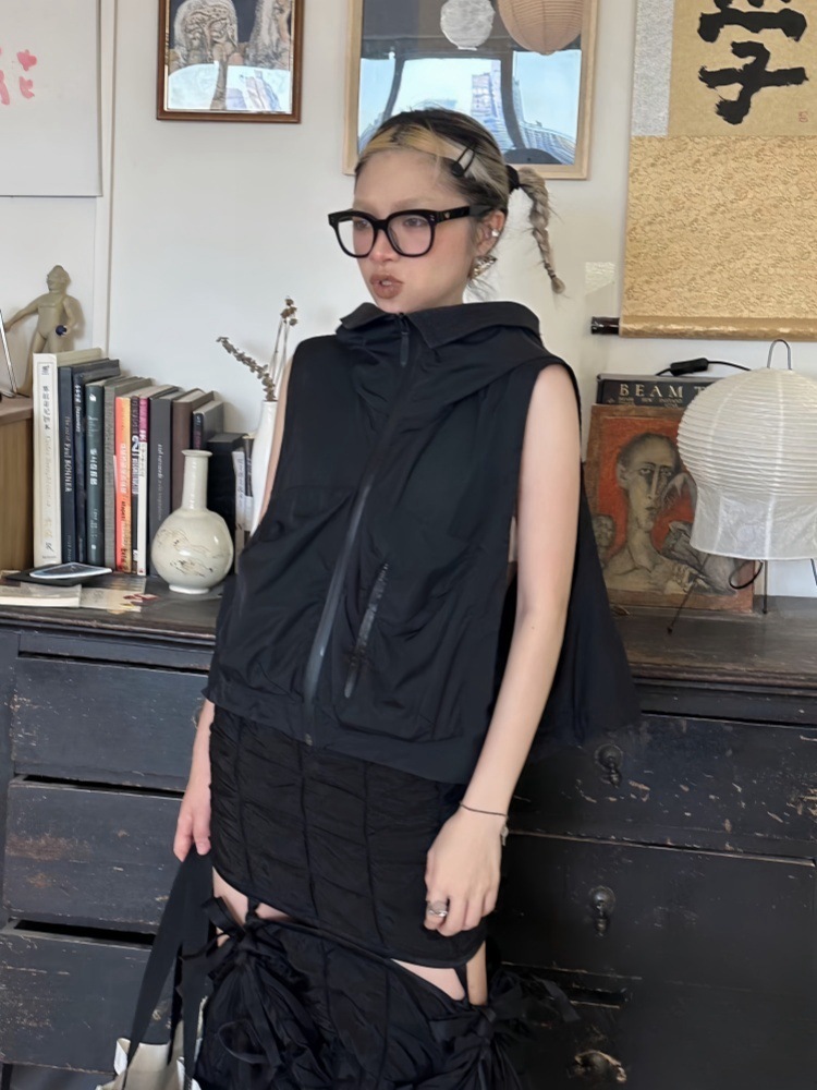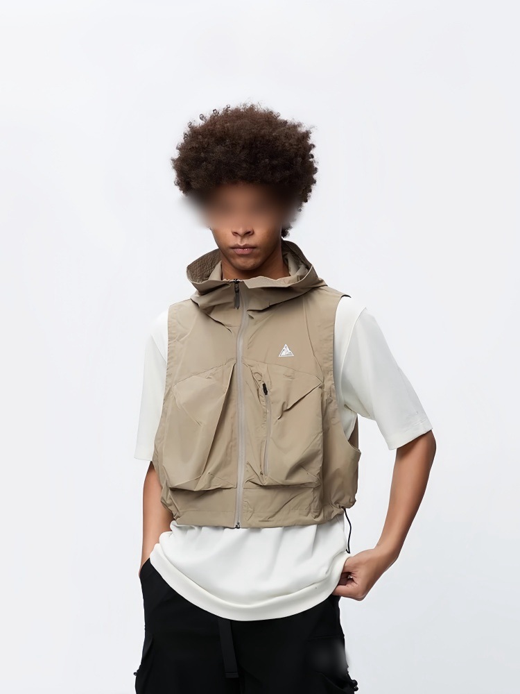 2025新款户外机能工装男女春季山系大口袋连帽无袖短马甲!