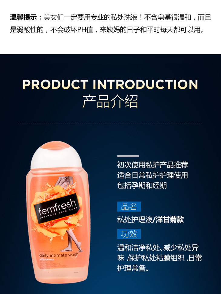 【英国妇协推荐】femfresh 女性私处护理液洗液 日常保养温和抑菌止痒去异味