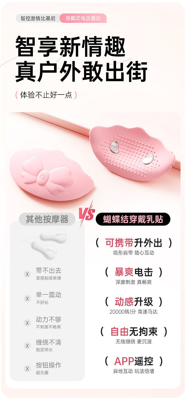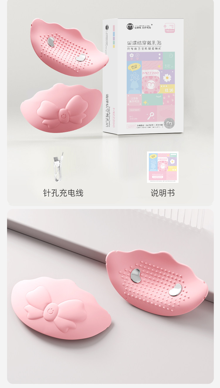 谜姬 蝴蝶结穿戴乳贴 电击震动乳房按摩