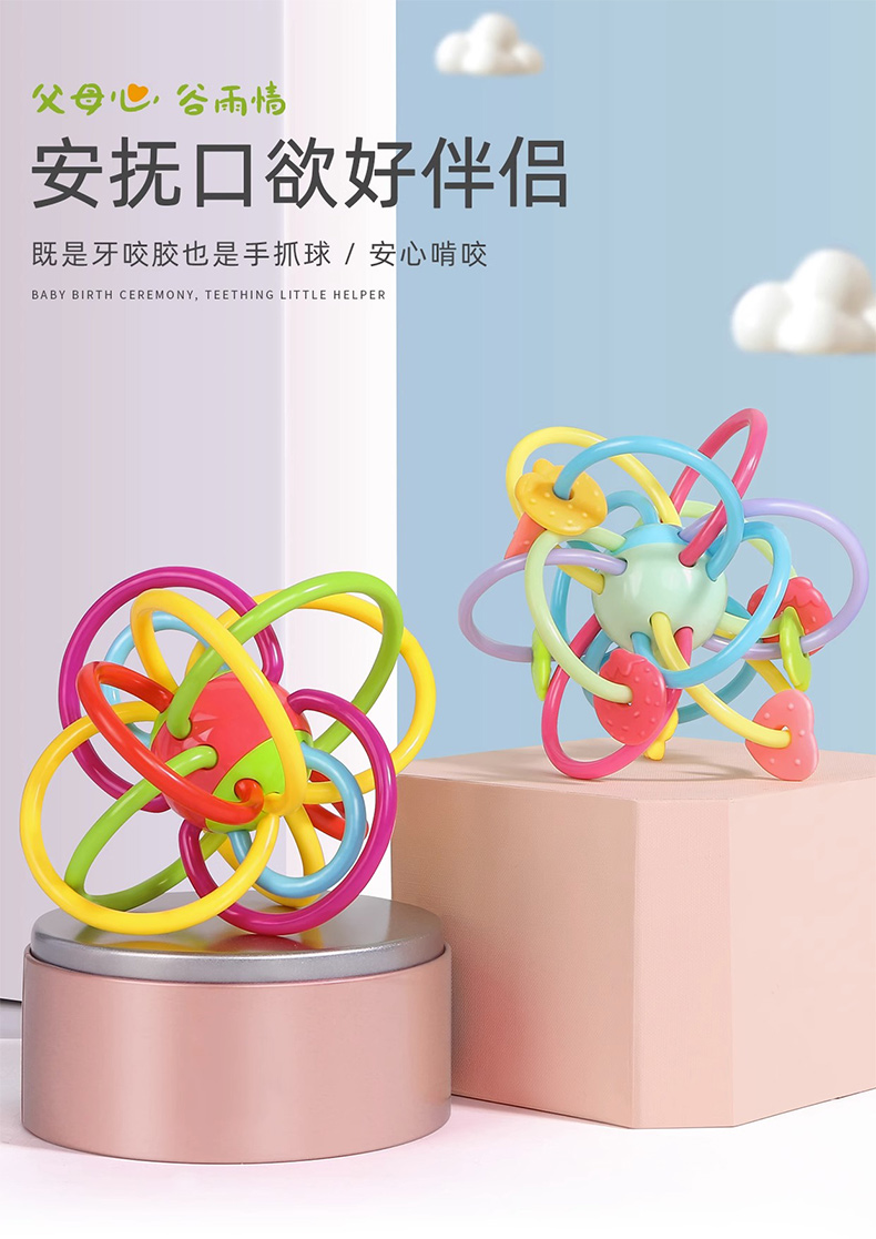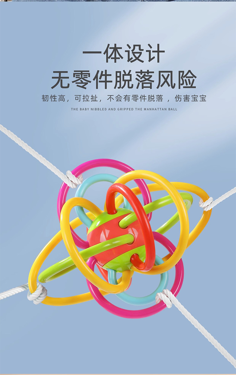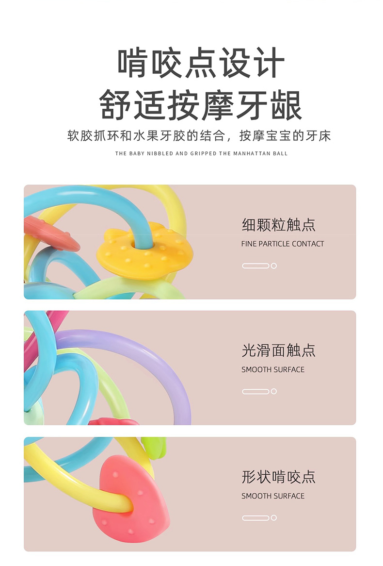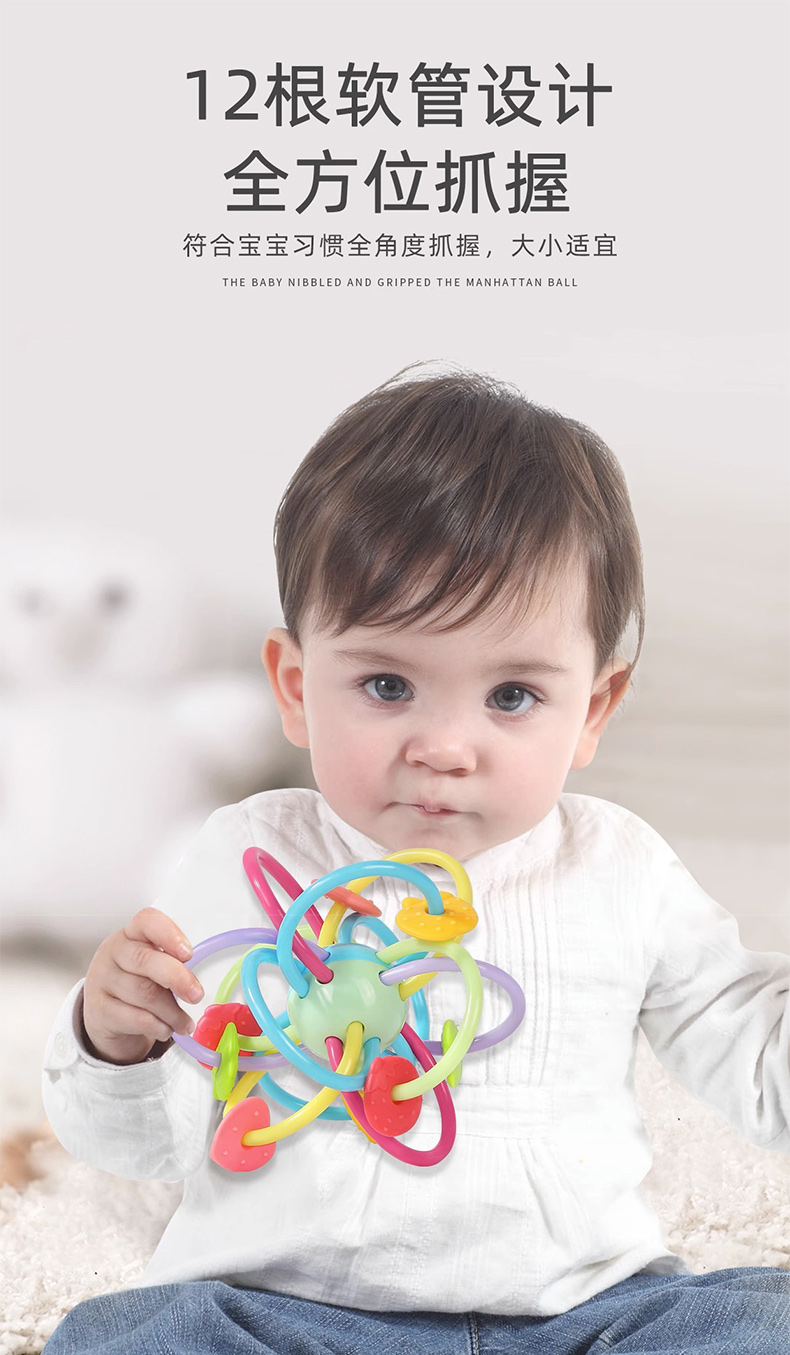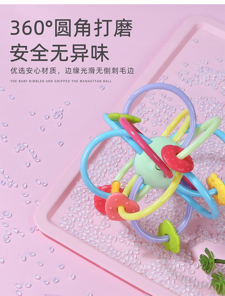 谷雨曼哈顿球牙胶摇铃玩具婴幼儿婴儿宝宝手抓球