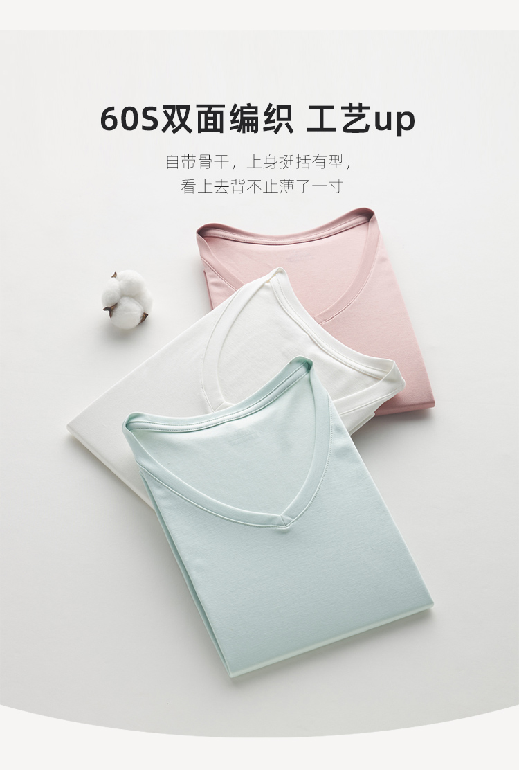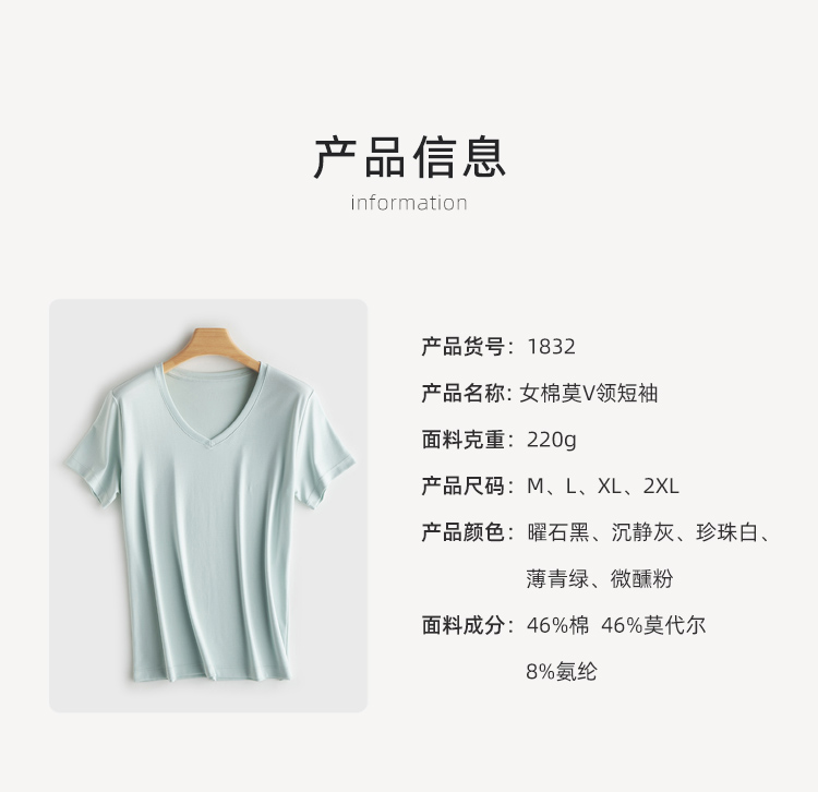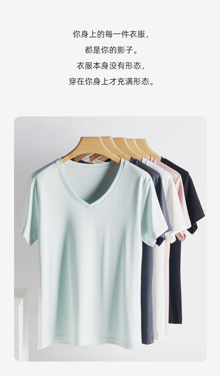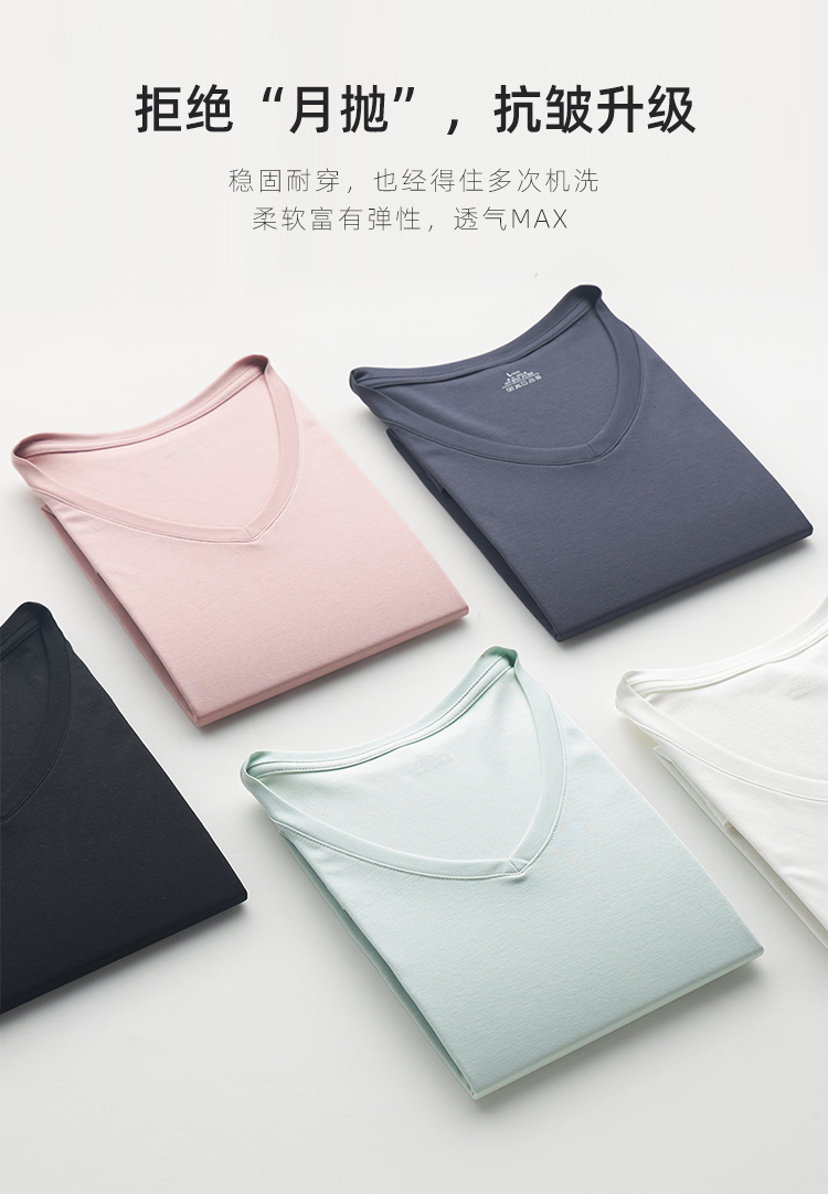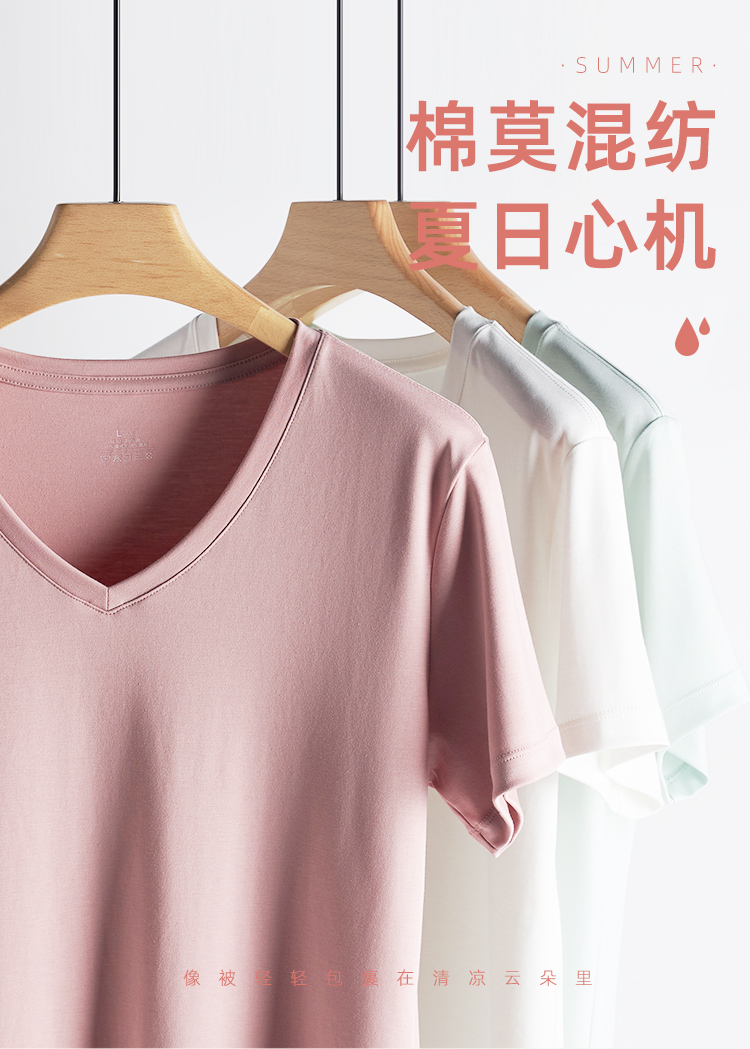 weyo 夏季新款女棉莫纯色舒适V领圆领短袖T恤1832、1833