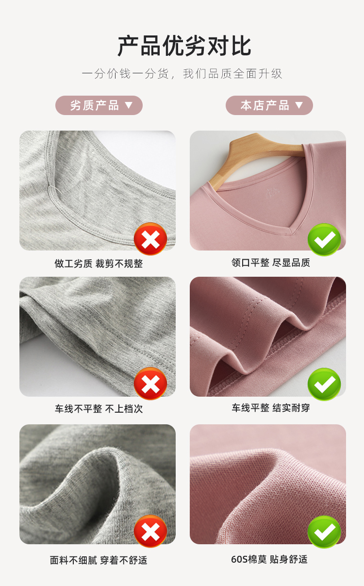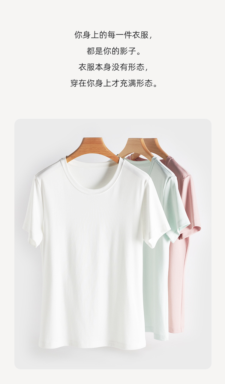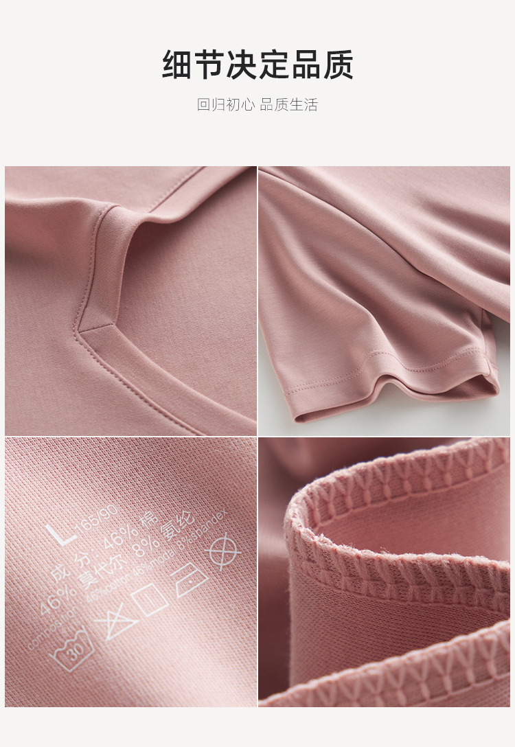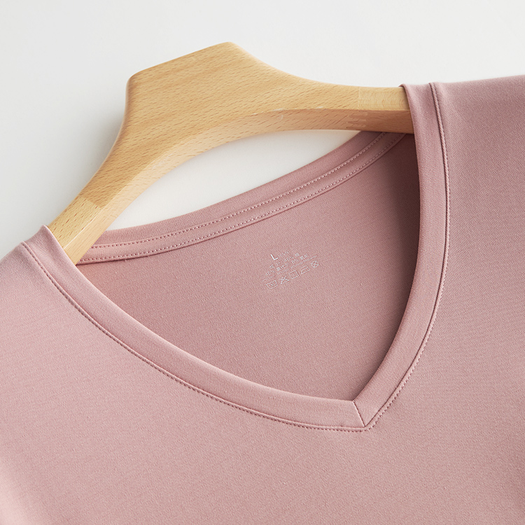 weyo 夏季新款女棉莫纯色舒适V领圆领短袖T恤1832、1833