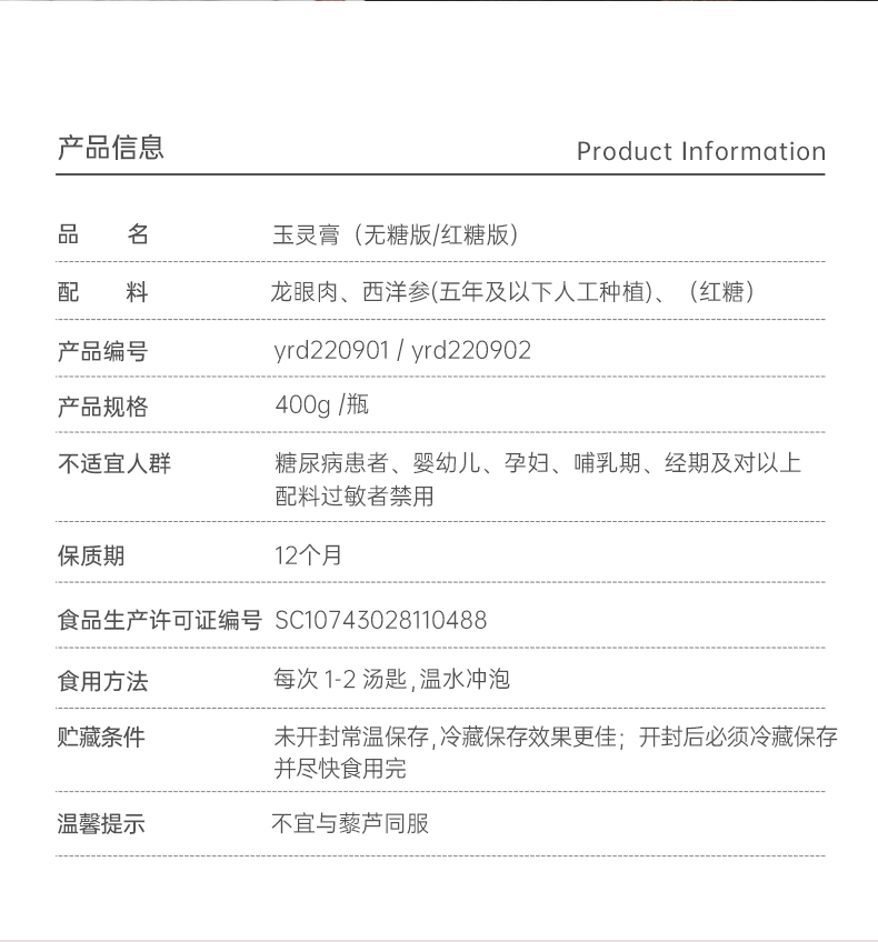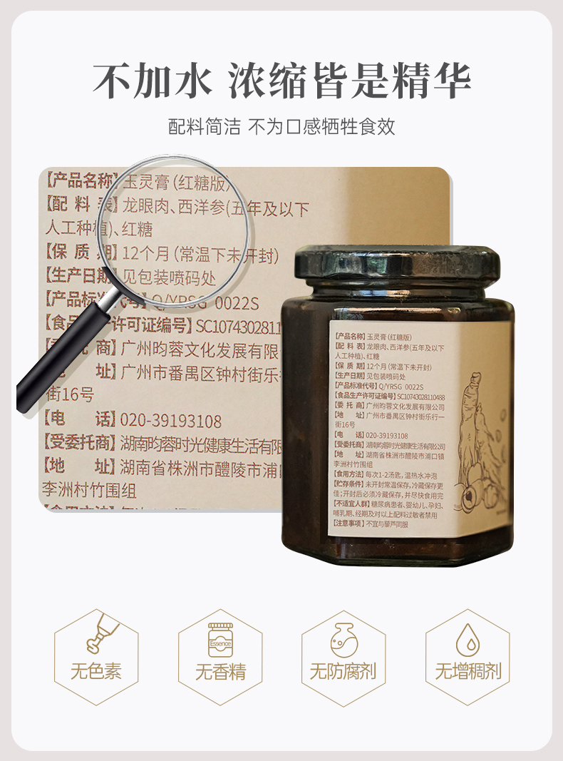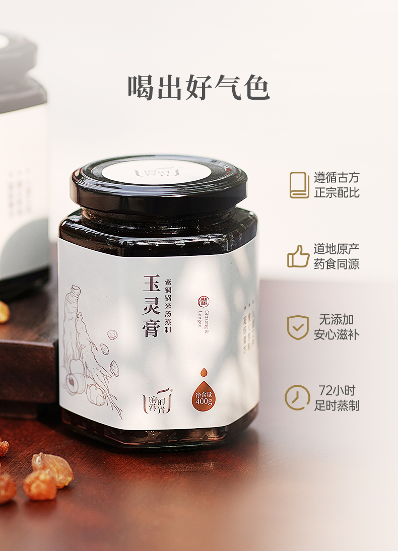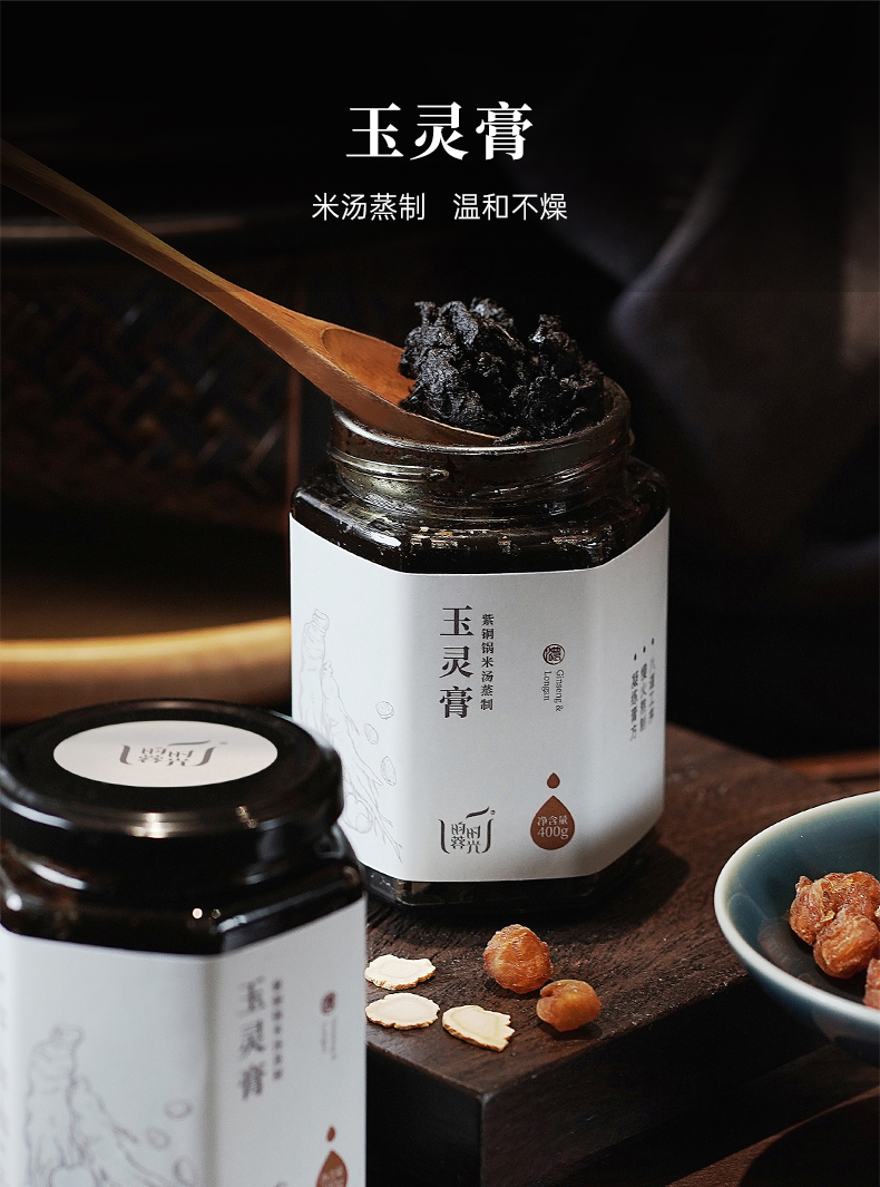 【昀蓉时光 手工玉灵膏】沿用古方米汤紫铜锅不断火足时蒸制72小时 · 道地生晒龙眼与西洋参10:1配伍 (400g/瓶)(无糖版)(包装升级·新老包装随机发货)