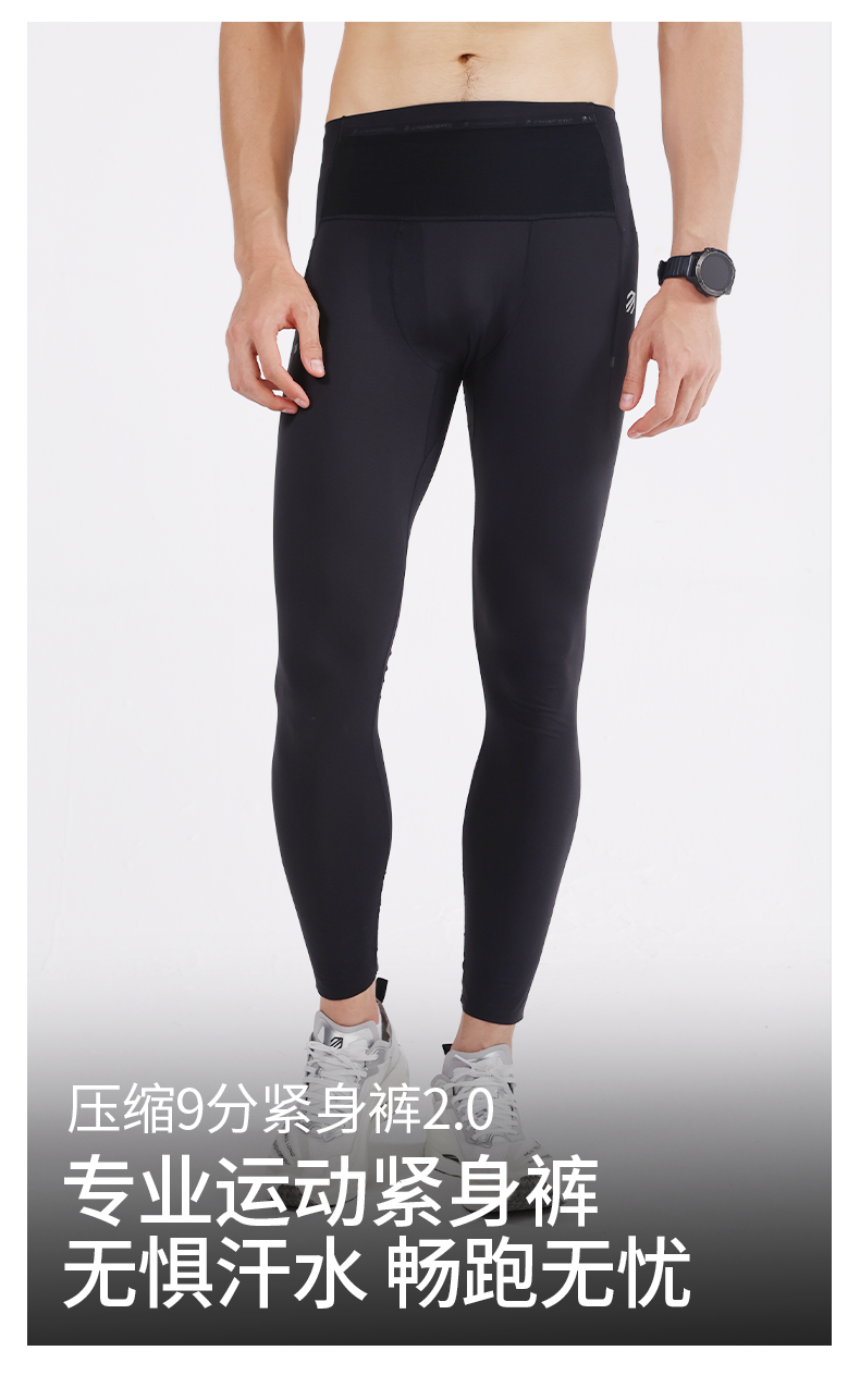 引擎鸟男款轻压缩九分紧身裤2.0版吸湿排汗速干马拉松运动长裤