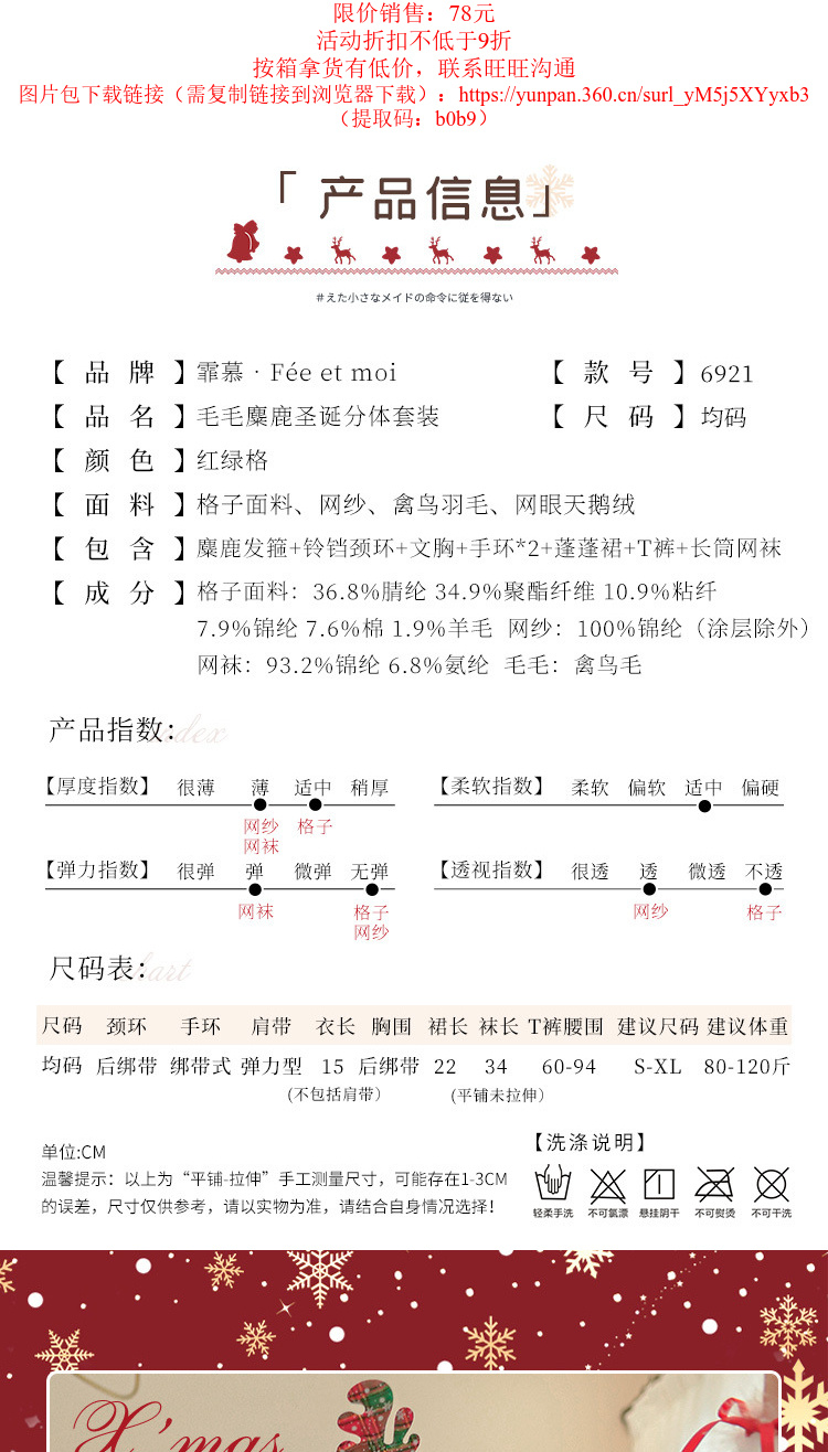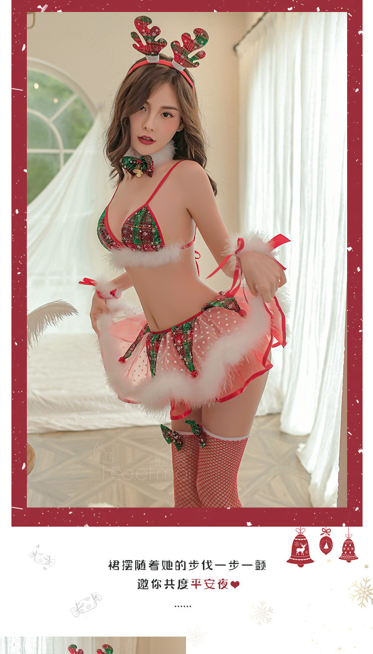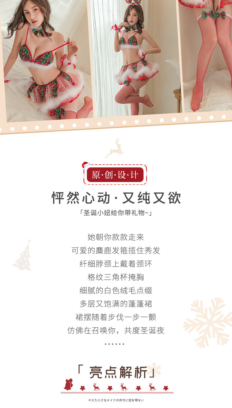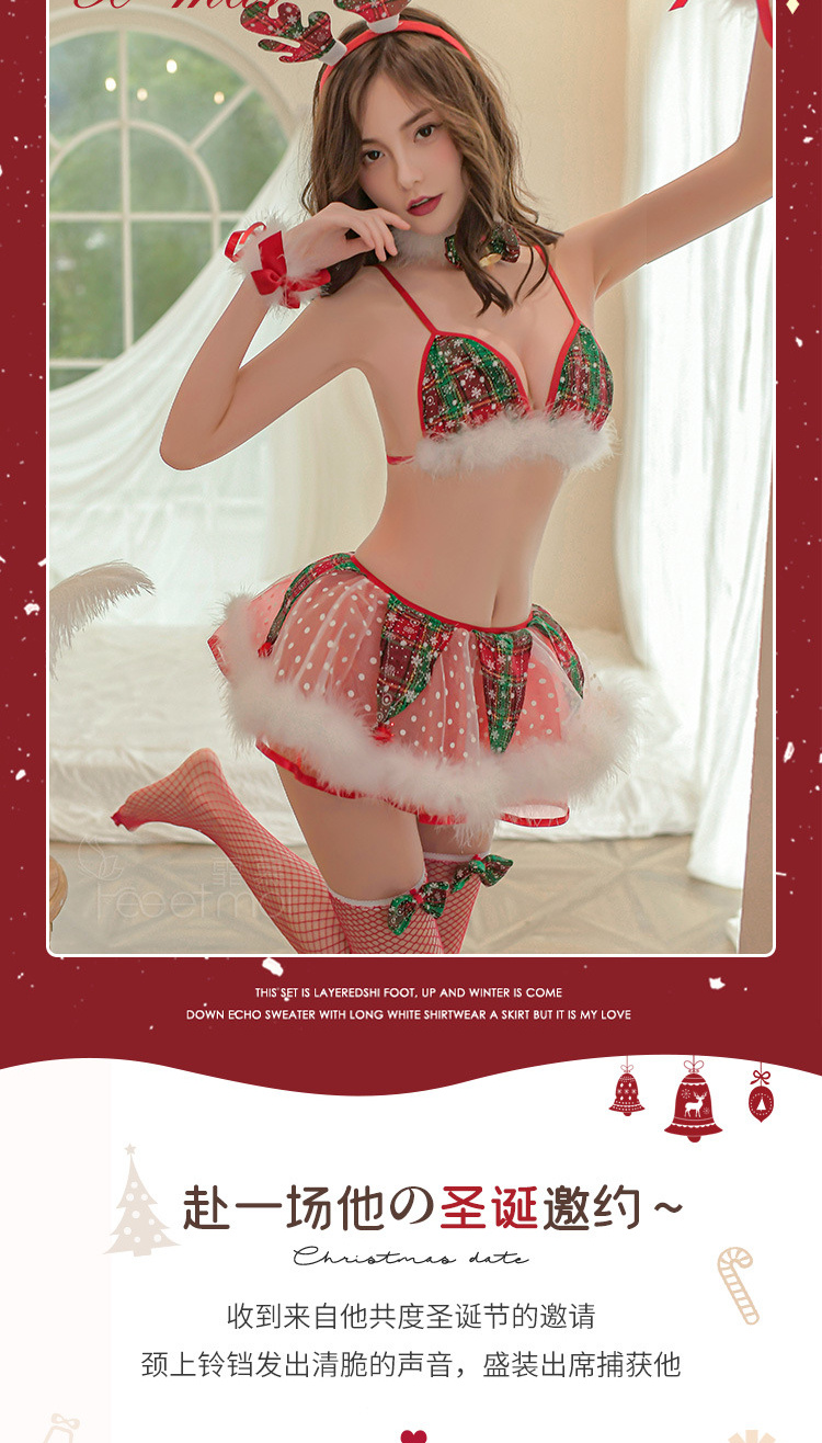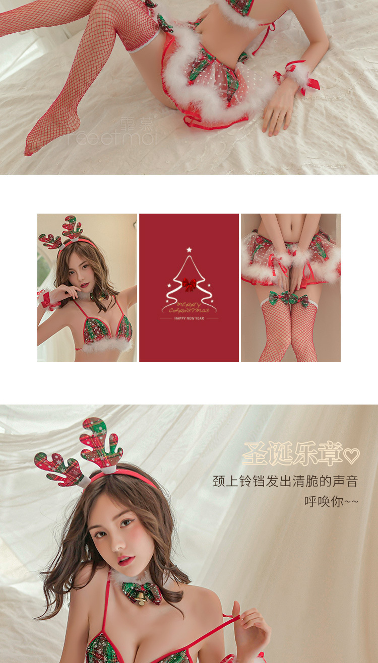 霏慕情趣内衣毛毛麋鹿圣诞分体套装