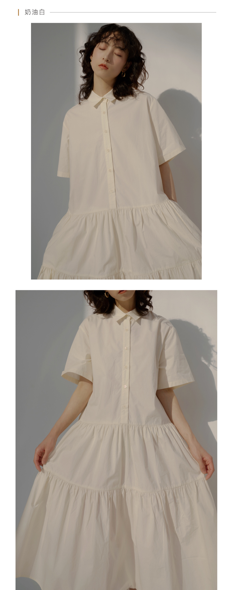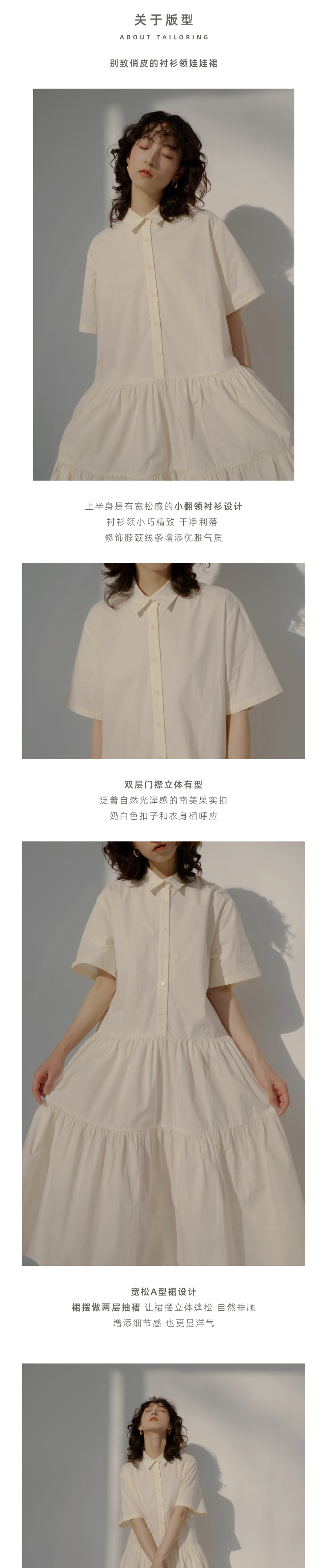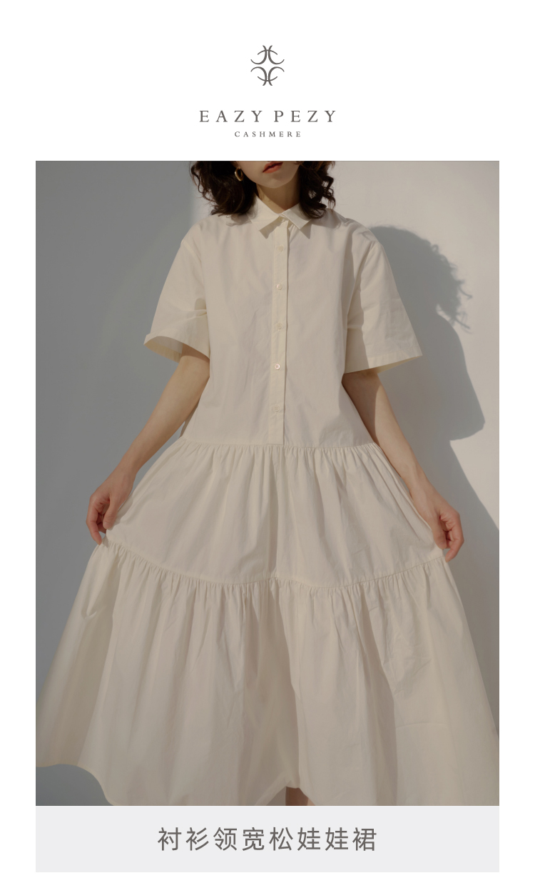 2022SS 日本水洗棉衬衫领宽松娃娃裙