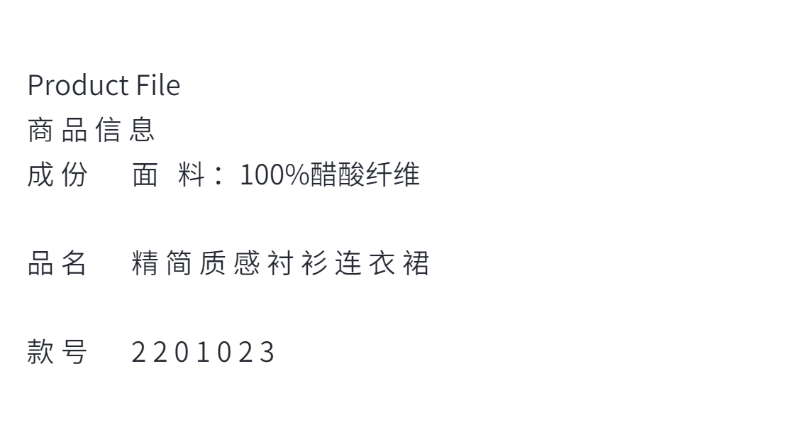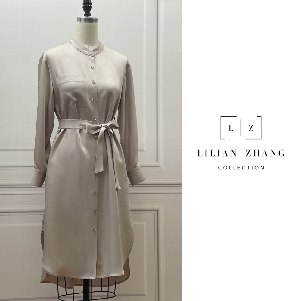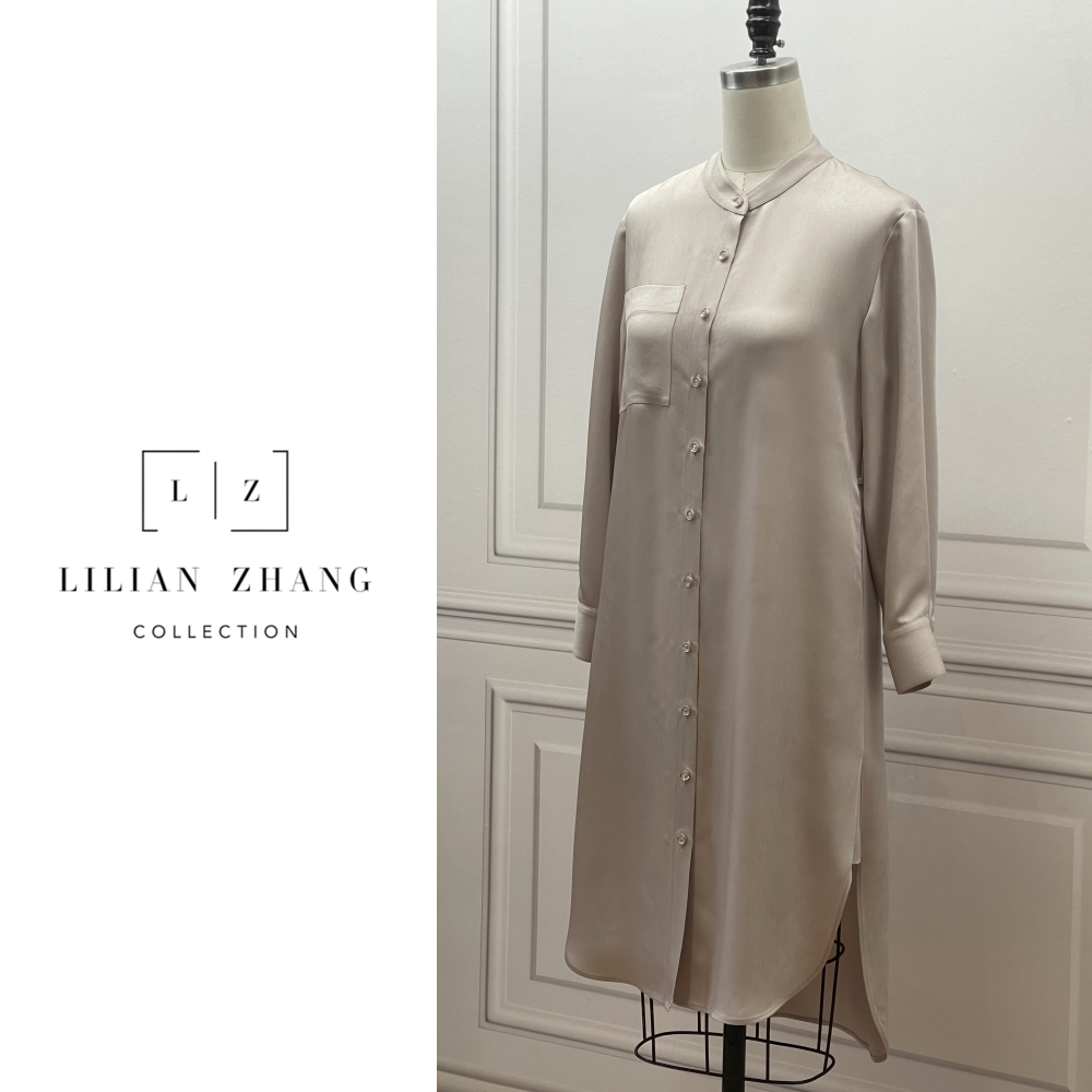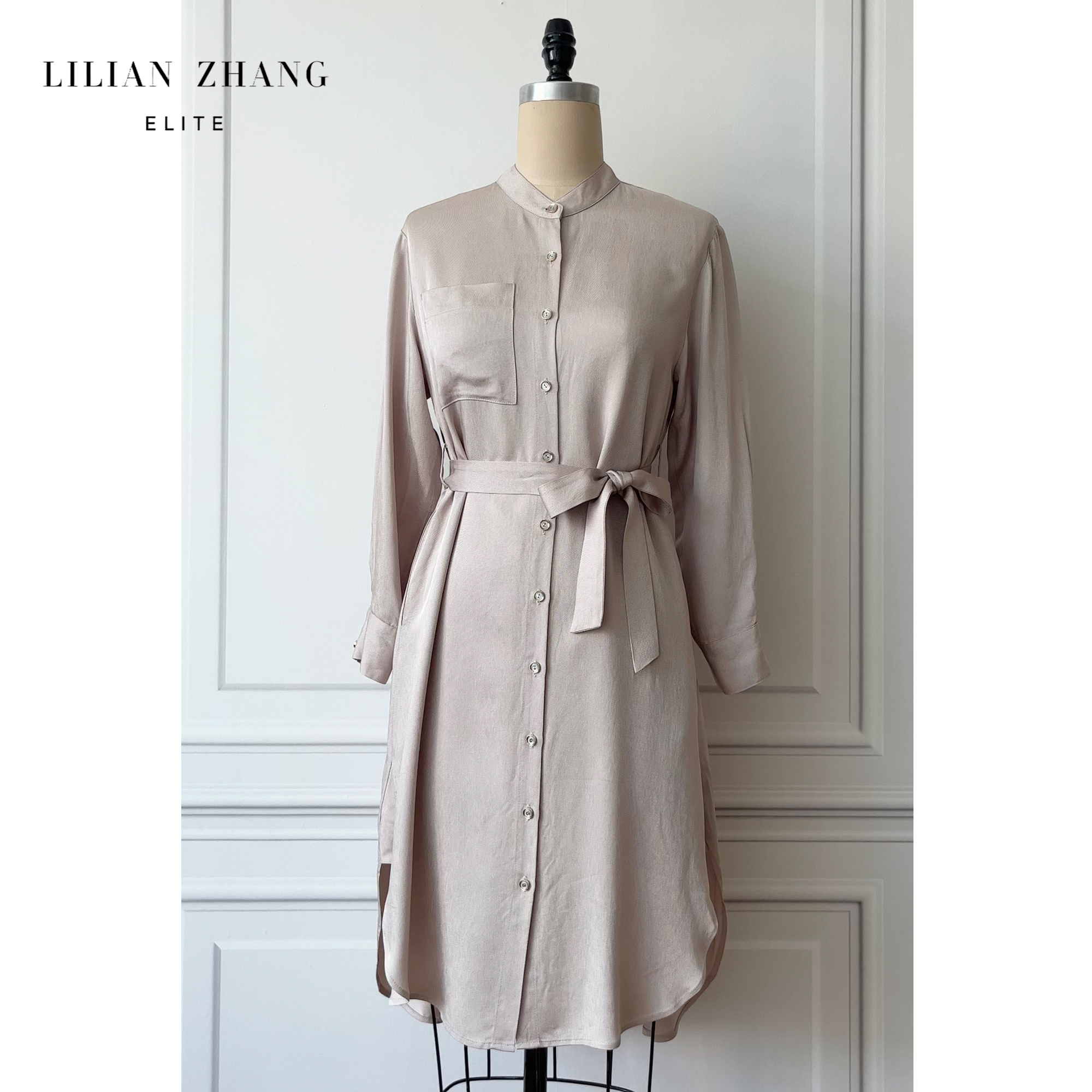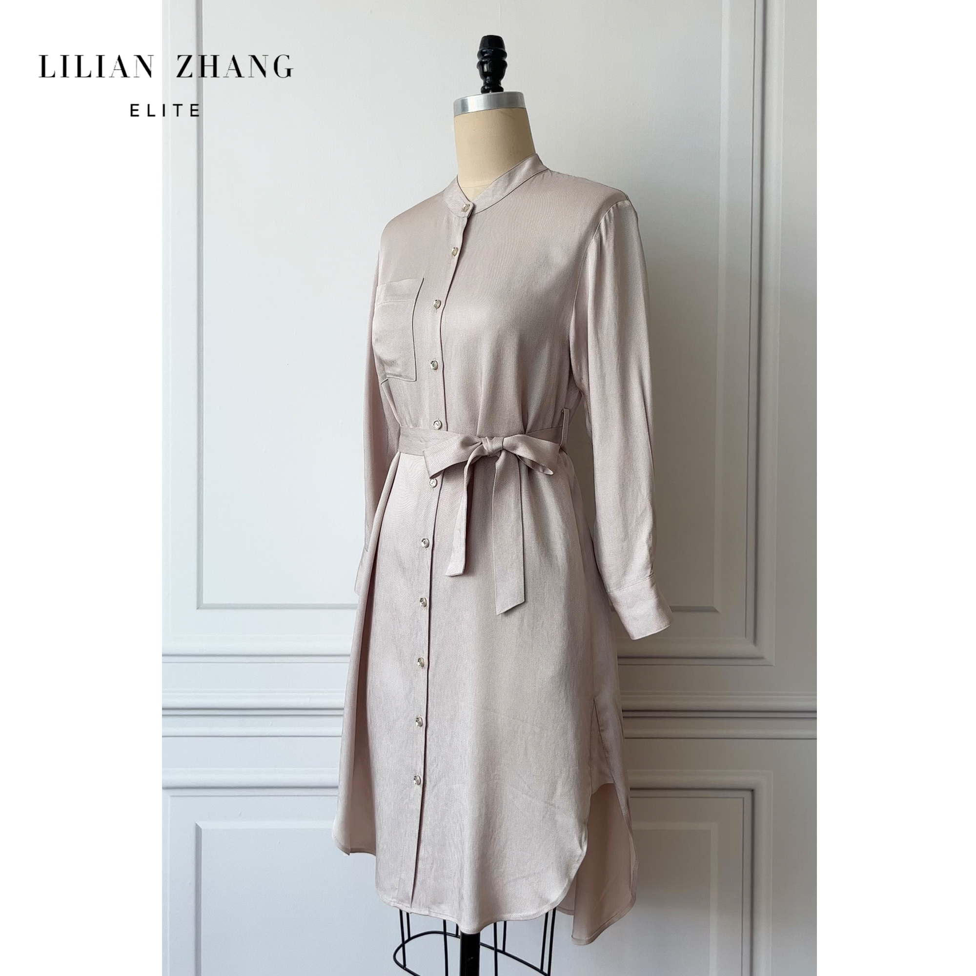 定制-收藏级—精简质感衬衫连衣裙- 优雅直筒长袖衬衫裙 2201023