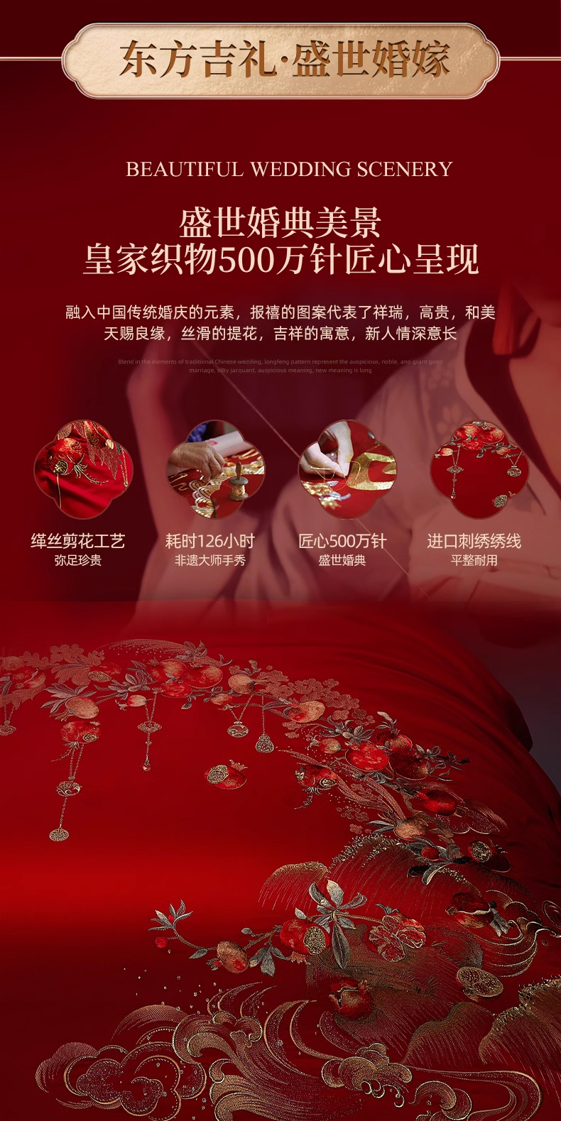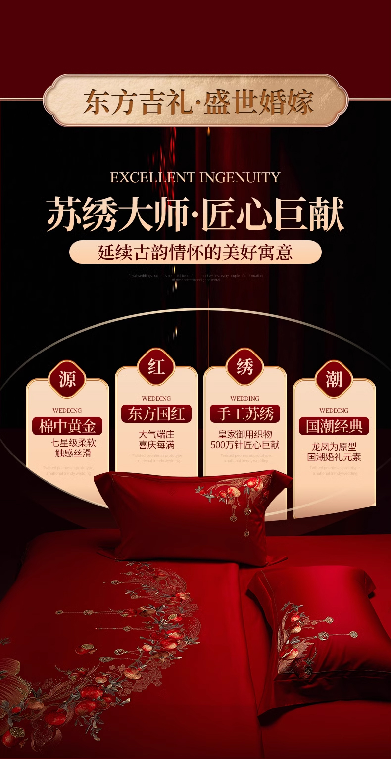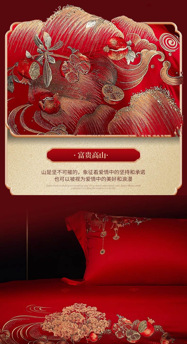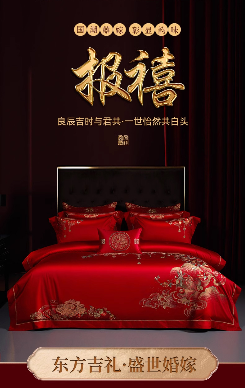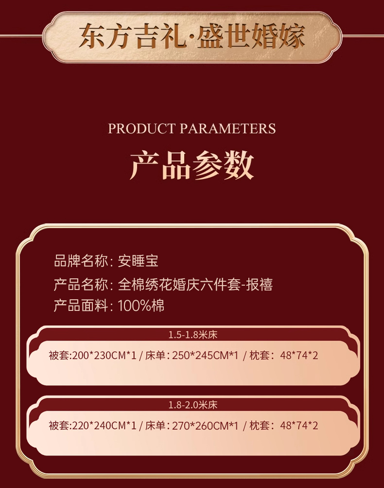 【春上新】10楼 安睡宝 全棉绣花婚庆六件套-报禧 吊牌价9599-9999元 活动价2999-3199元