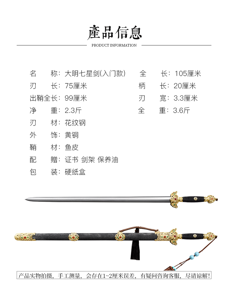大明七星剑 入门款 清式宝剑 龙泉沈广隆宝剑 传统宝剑 未开刃