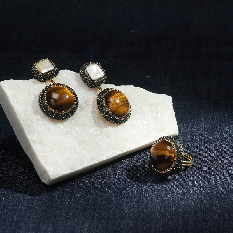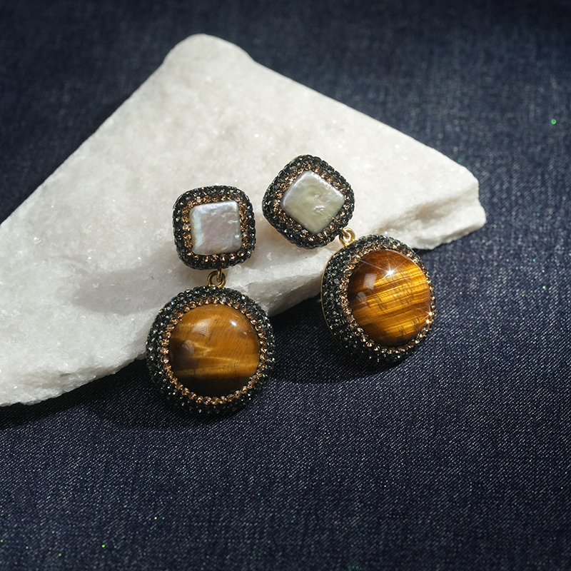 北京仓|SORU-Tigers Eye-虎眼石 巴洛克珍珠 耳环[英国设计师]