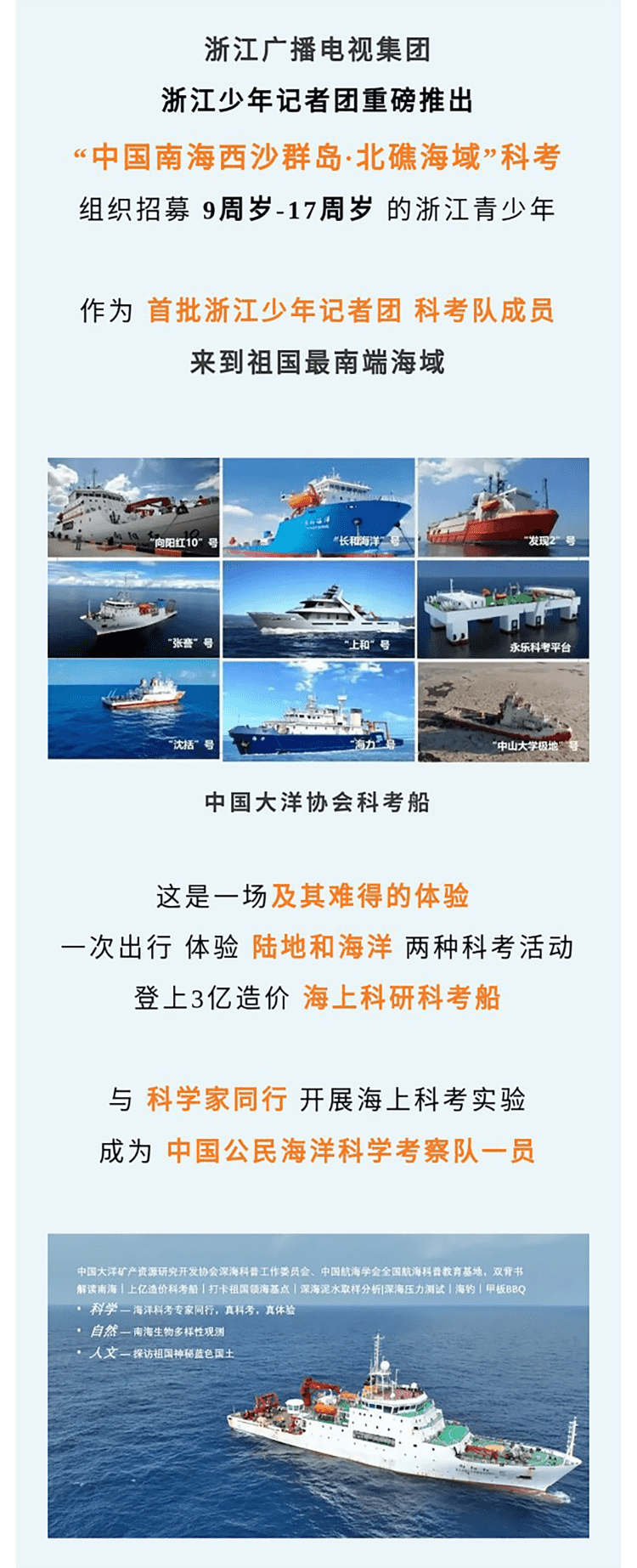 仅限12席!浙江少年记者团 “中国南海西沙群岛科考”招募中