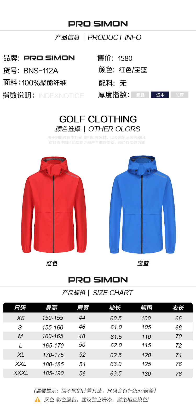 BNS-112A 【男女同款】PROSIMON简约防风泼水连帽夹克雨衣