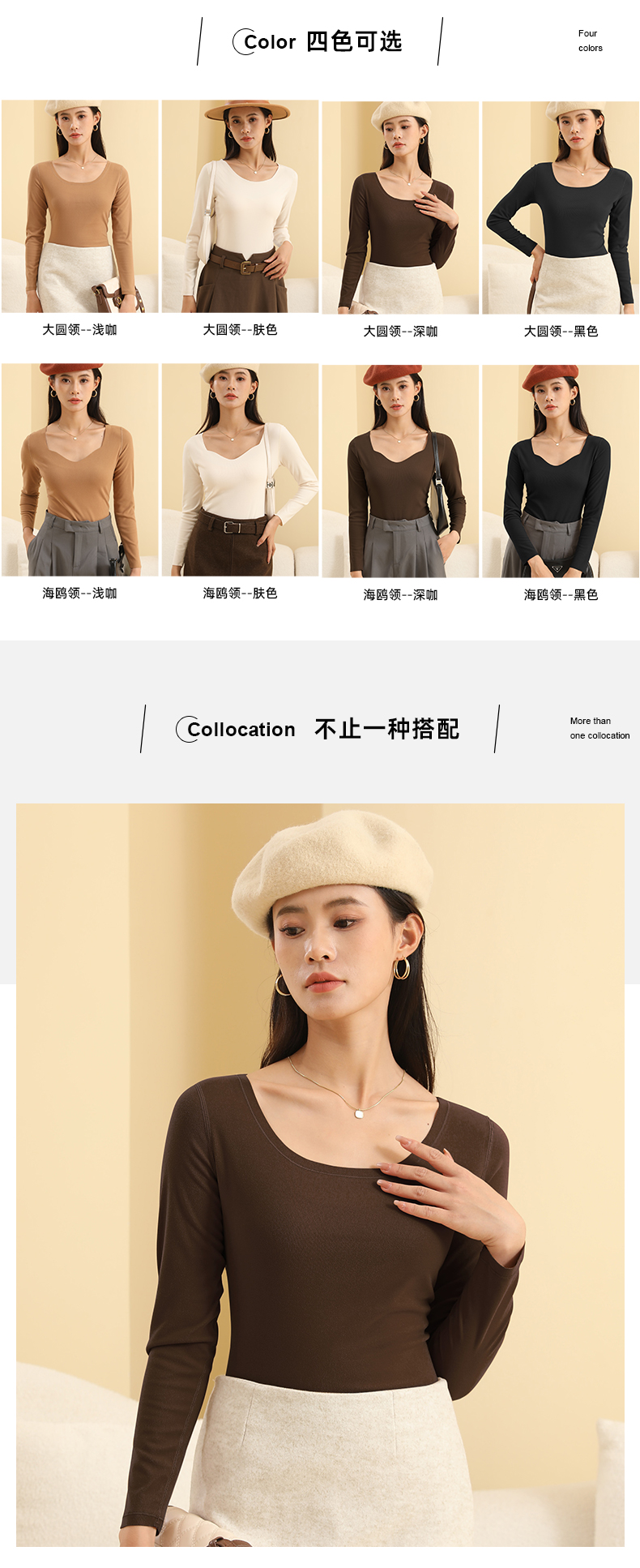 【朵梵萱 椰油打底衣】简约纯色 亲肤百搭 圆领 海鸥领两款可选 女士秋冬打底