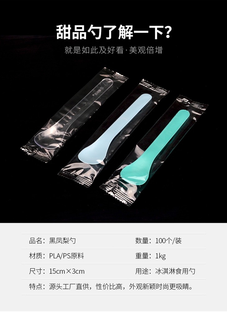 喇叭花PLA 独立包装透明塑料长柄冰淇淋勺一次性冰激凌甜品凤梨勺水果勺100只