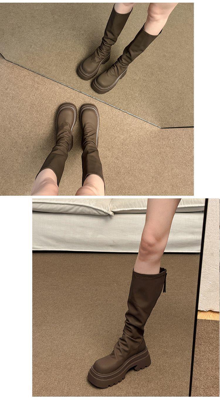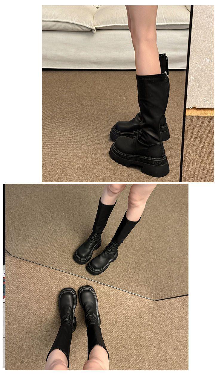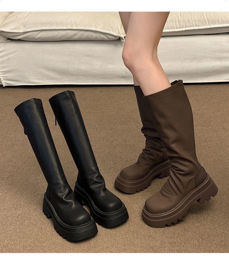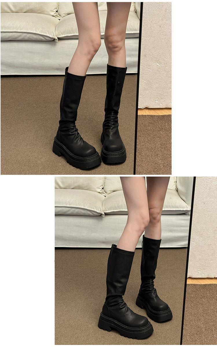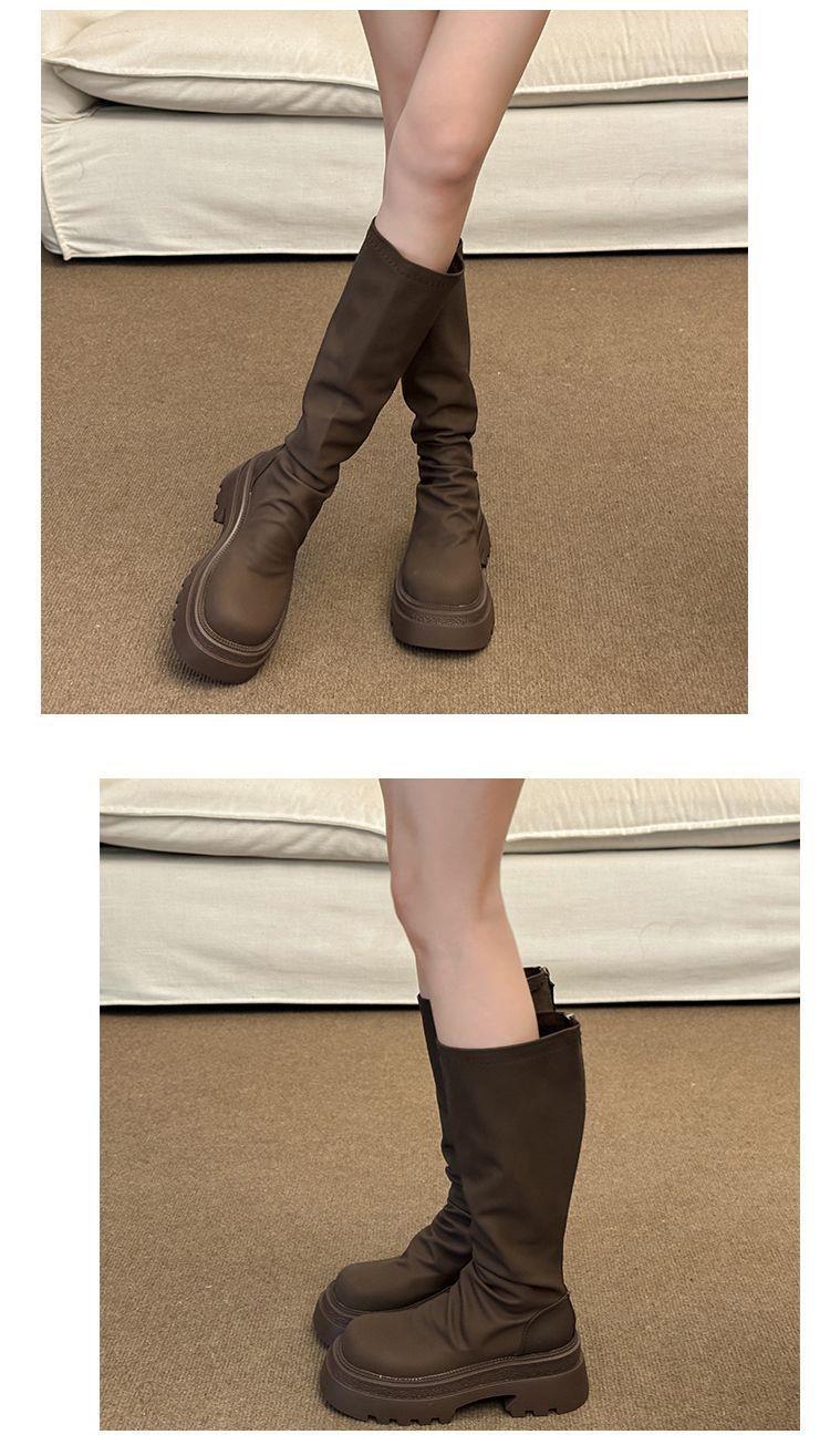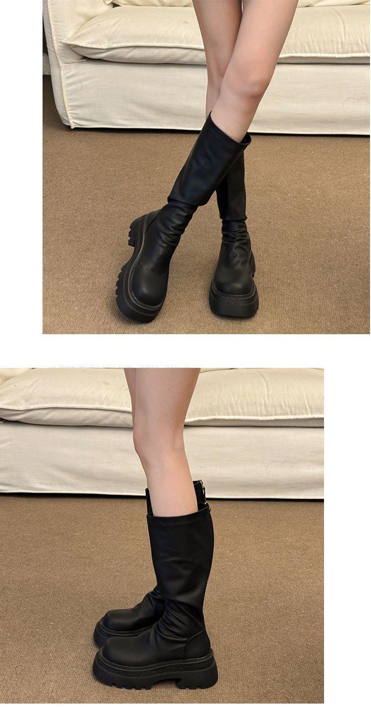 女士弹力长筒靴骑士增高小个子瘦瘦靴子新款松糕厚底高筒辣妹女真长靴35-40