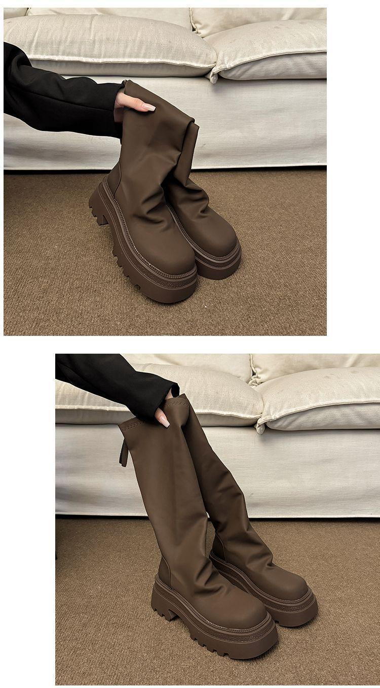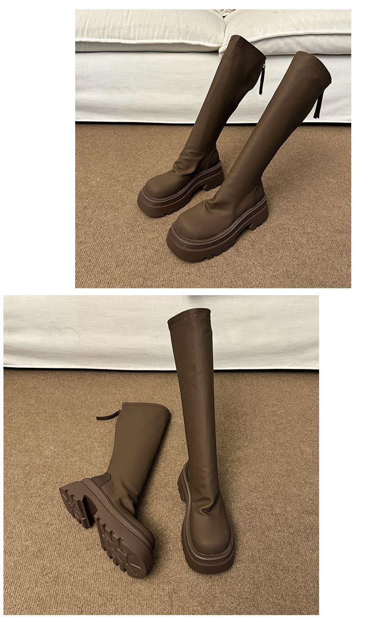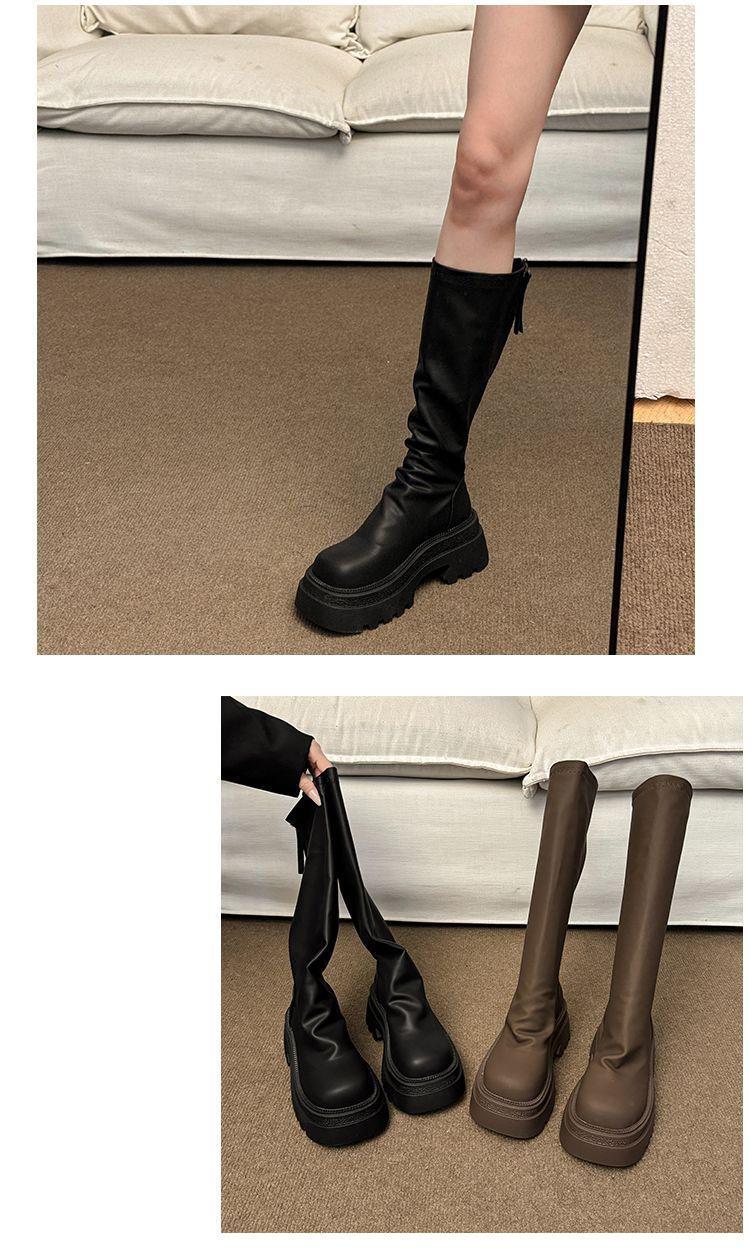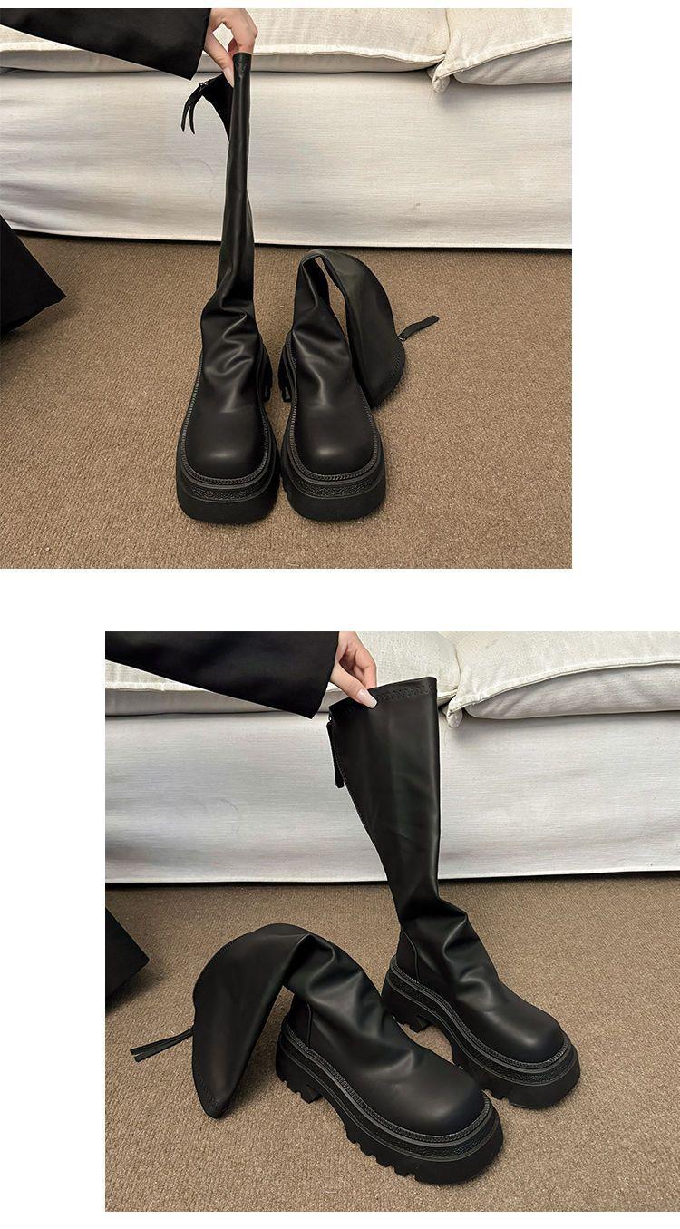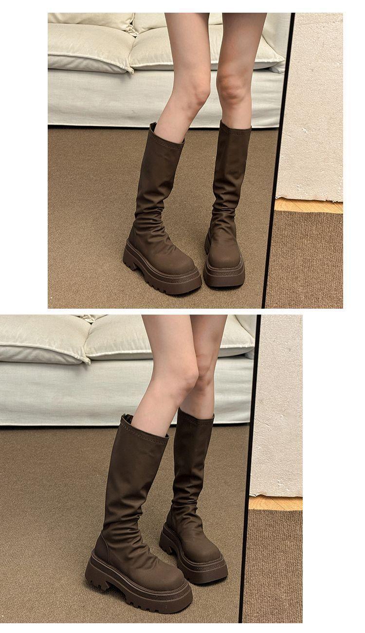 女士弹力长筒靴骑士增高小个子瘦瘦靴子新款松糕厚底高筒辣妹女真长靴35-40