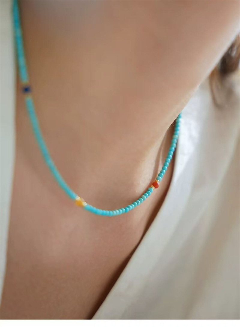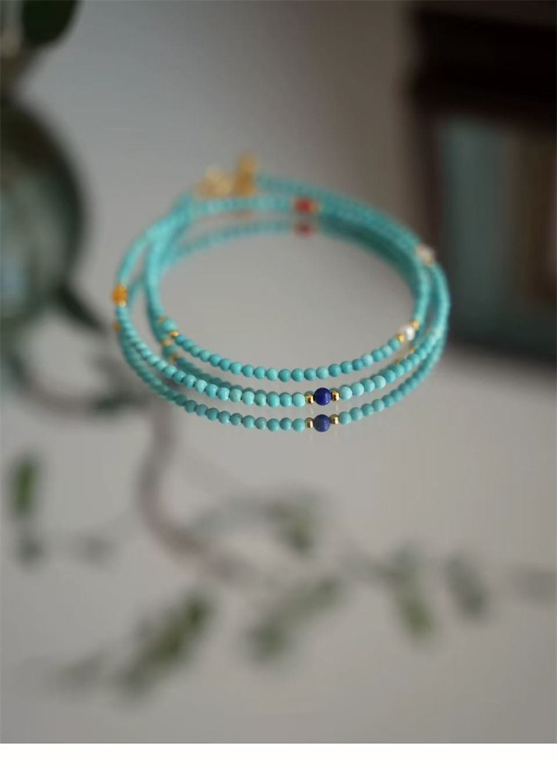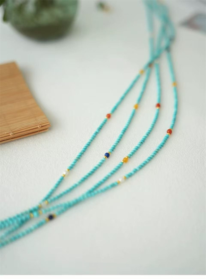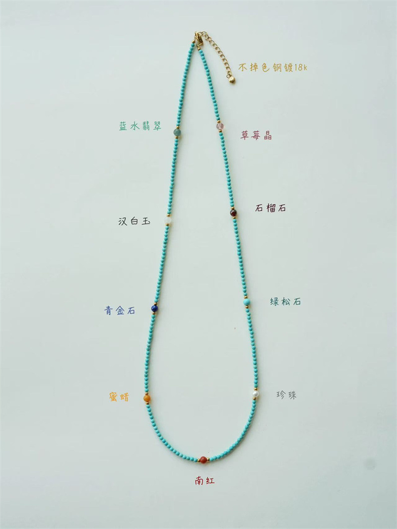 六鑫珠宝 2026新中式天然水晶国风蓝绿松石南红多宝项链