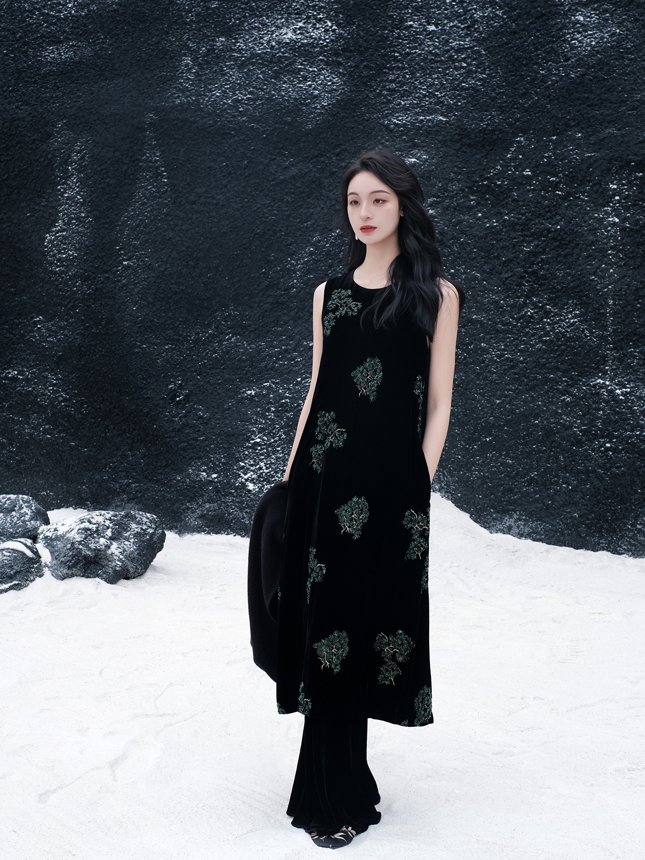 盛唐牡丹|串珠松柏丝绒长裙(石蕾专拍)