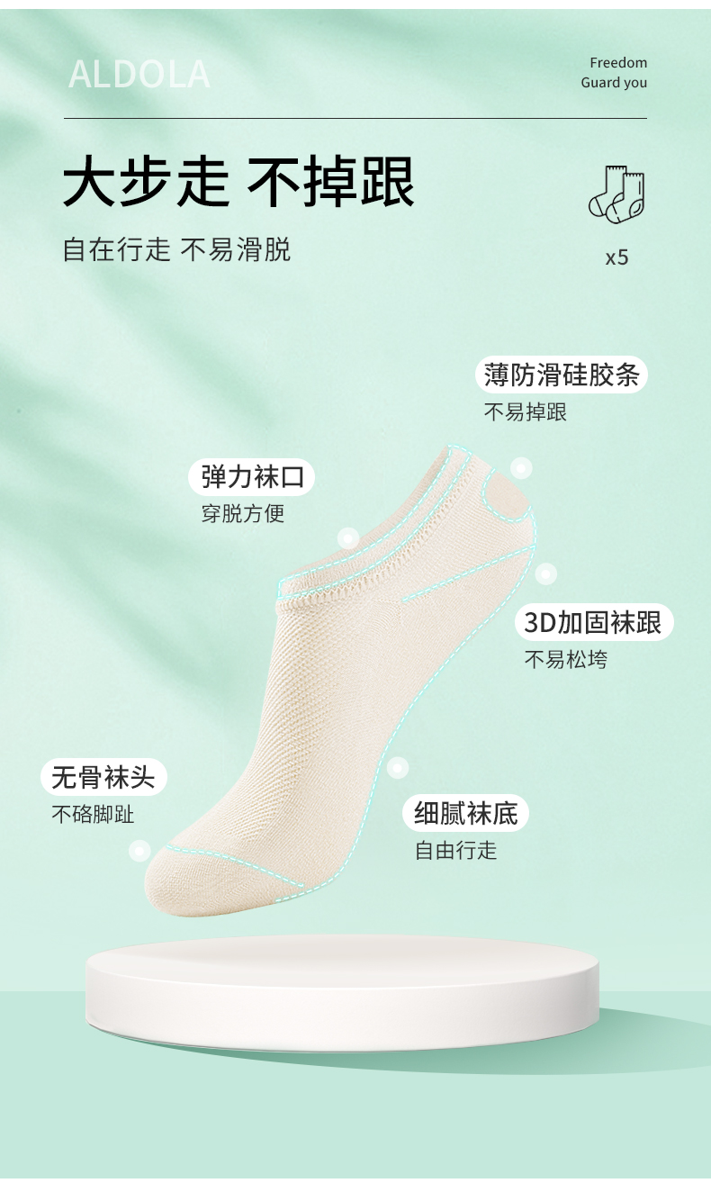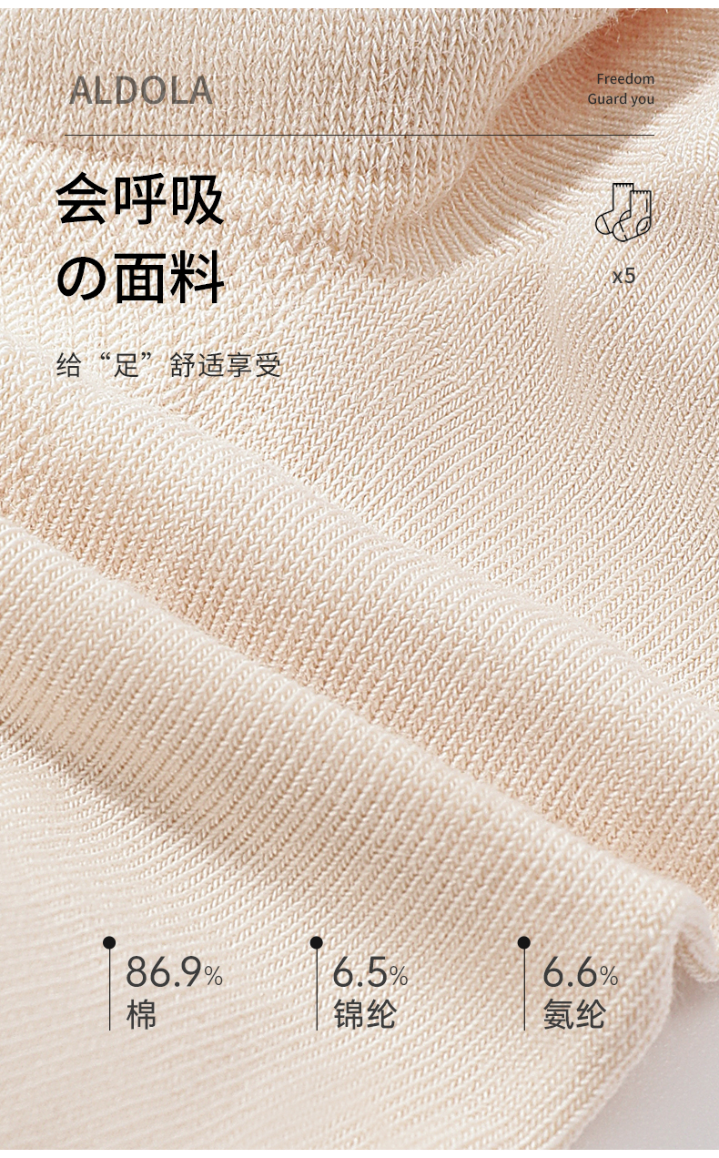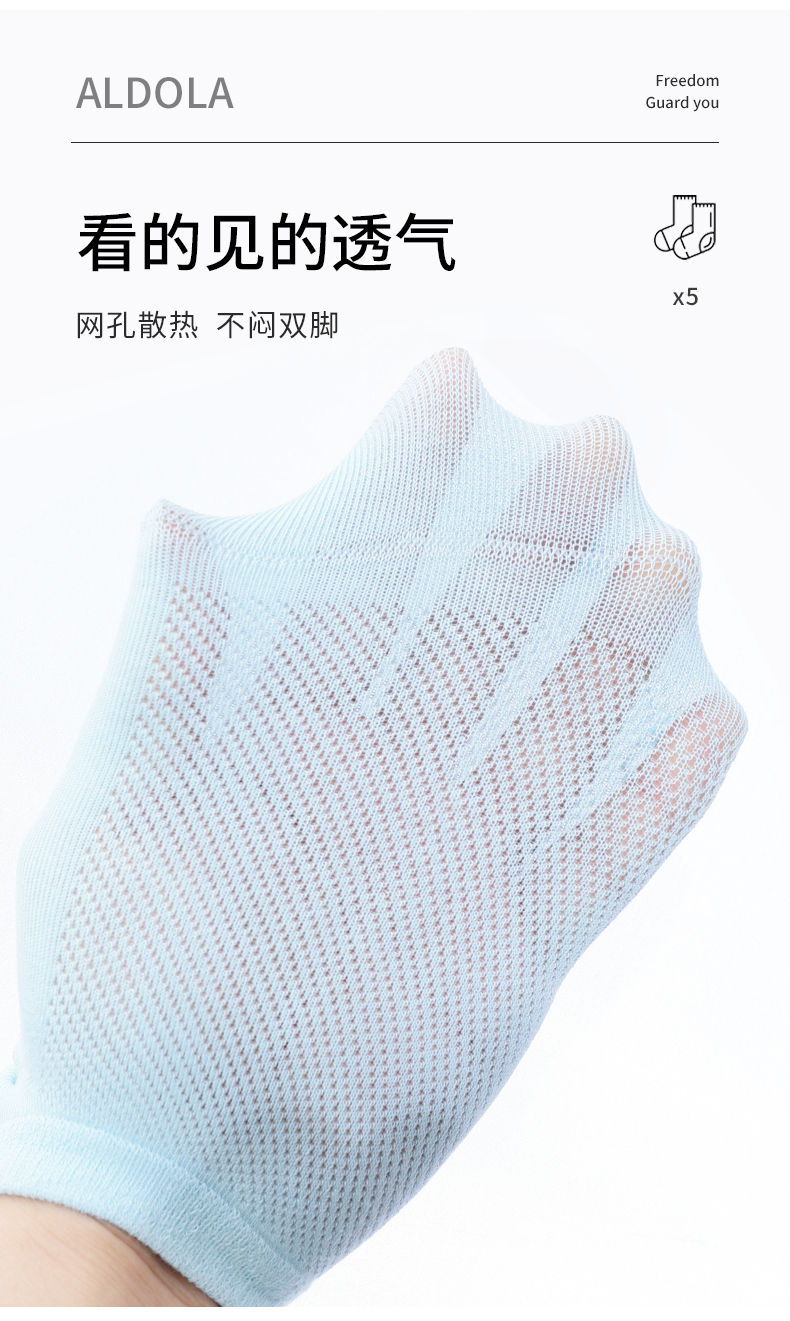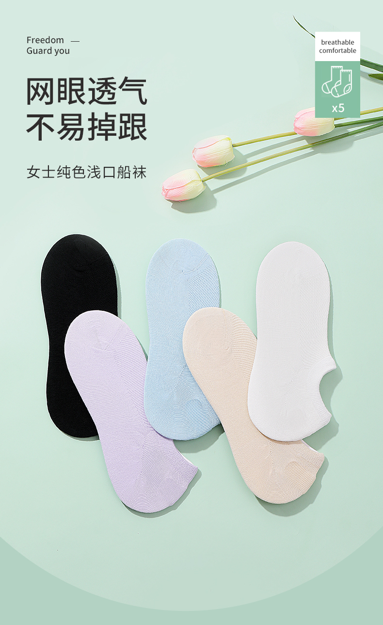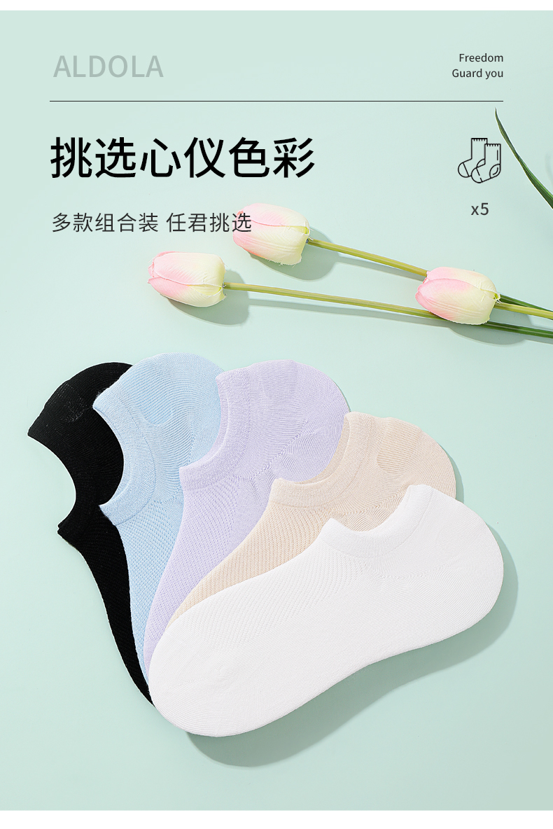 雅黛丽夏季隐形船袜女棉质透气高弹糖果色系柔软袜子5双装
