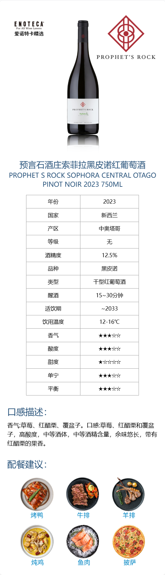【95 分,稀缺风土黑皮诺】Prophet S Rock Sophora Central Otago Pinot Noir 2023 750Ml 预言石酒庄索菲拉黑皮诺红葡萄酒
