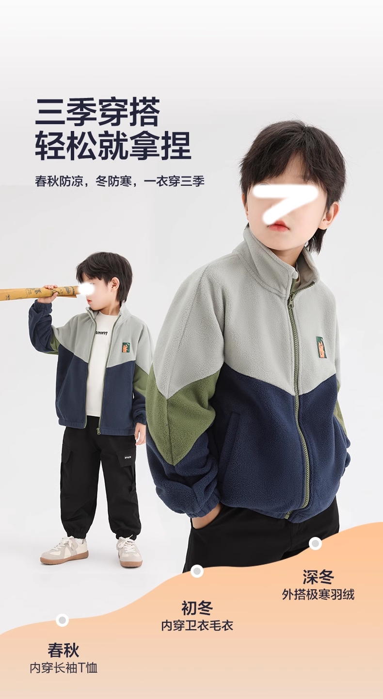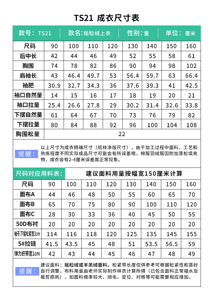 裁缝学苑TS21童装男童冬季摇粒绒外套纸样上衣儿童拉链开衫样板