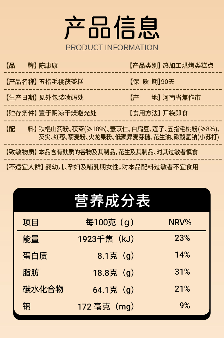 【陈康康】五指毛桃茯苓糕(福字糕) 古方“四神”配方升级 呵护脾胃 不怕湿 200g/盒