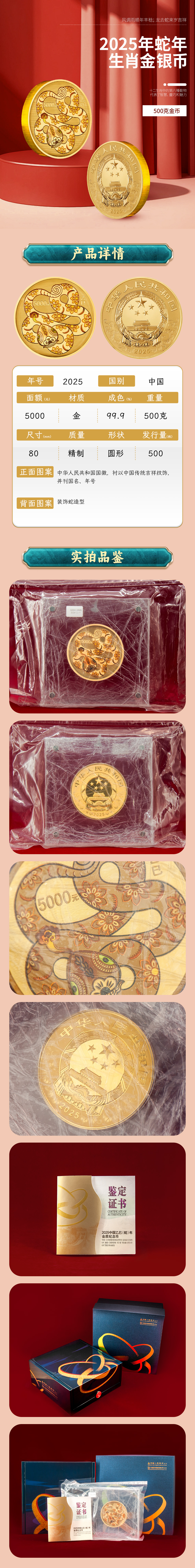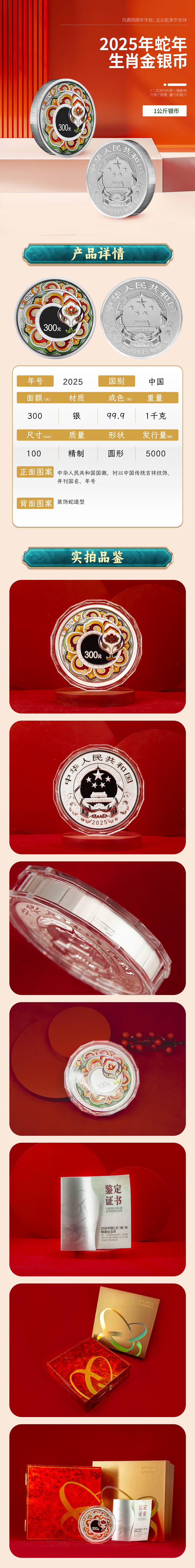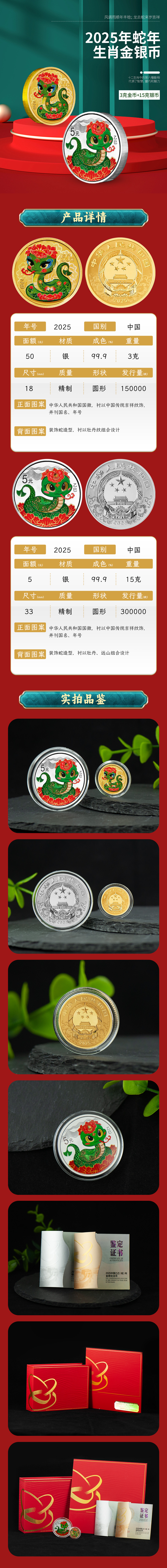 2025年蛇年生肖金银币 15克彩银币 彩金银 梅花金银 150克银 1公斤银蛇等