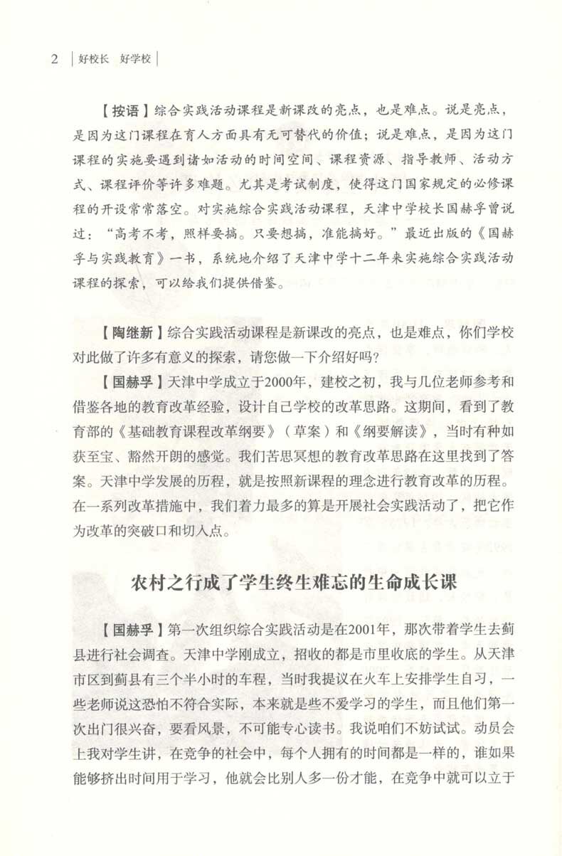 《好校长、好学校》是陶继新先生与全国20位名校长对话的集萃。对话中校长以叙事为主,陶先生以说理为主。叙事皆是该校最有特色的“景点”,让读者可以窥斑见豹,领略校长办学特色与学校发展的妙道。陶先生所评,则从学理的层面,对校长所说给予高屋建瓴的理论提升,让人有一种豁然开朗、洞然天开的感觉。正是因为深受广大校长的喜欢,《中国教育报》还专门开设了“陶继新对话名校长系列”,这《好校长、好学校》中的不少文章,便是从这个栏目中选取的。