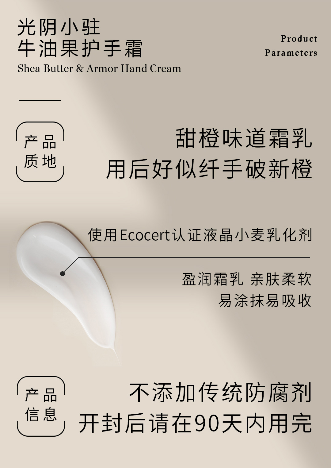 “光阴小驻”牛油果橙香护手霜/倍量乳木果/无香精色素/保湿不油腻