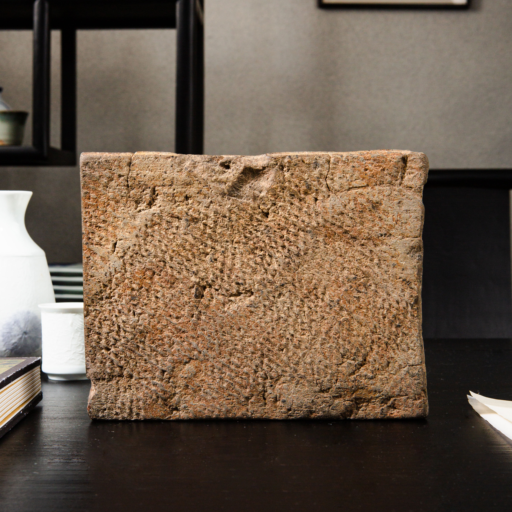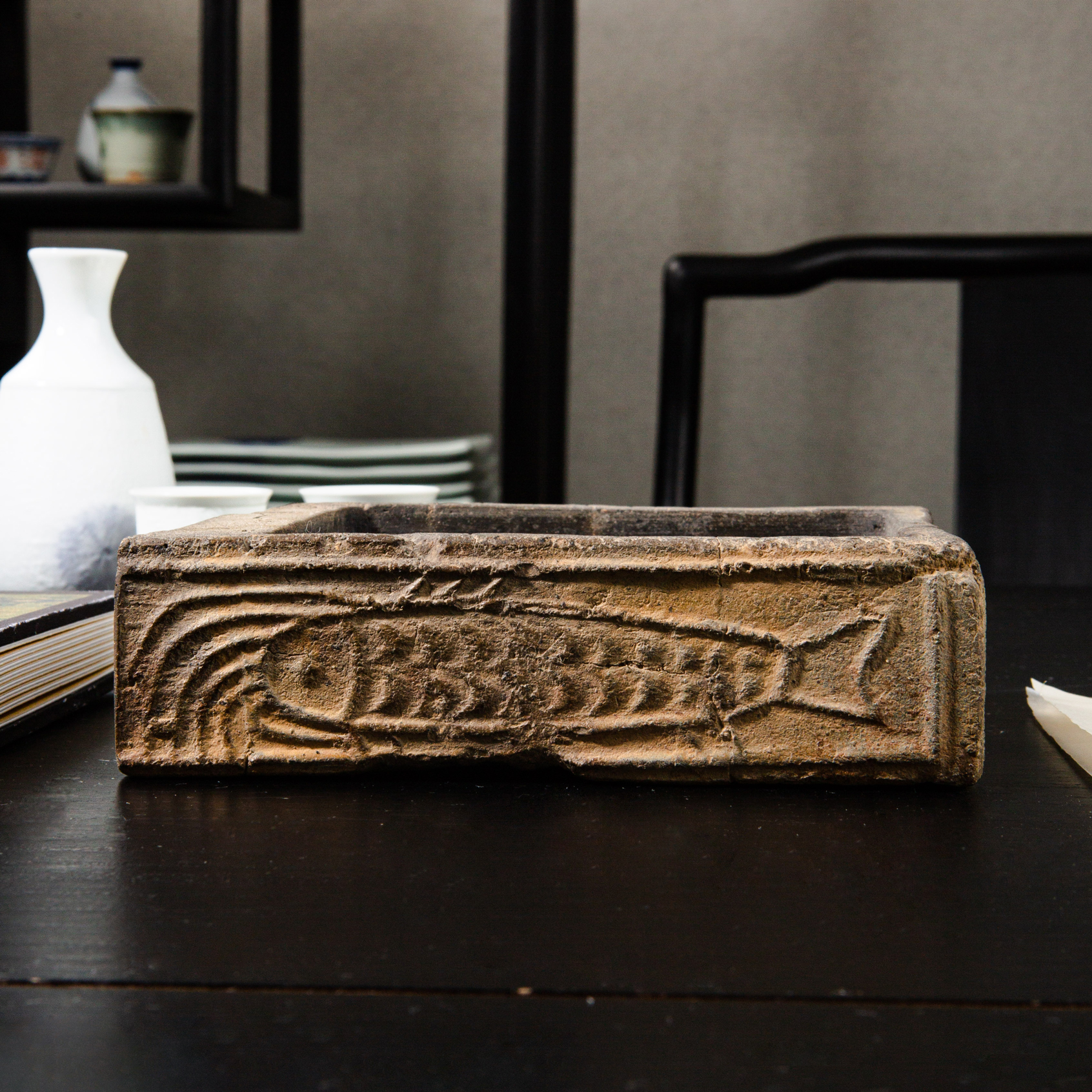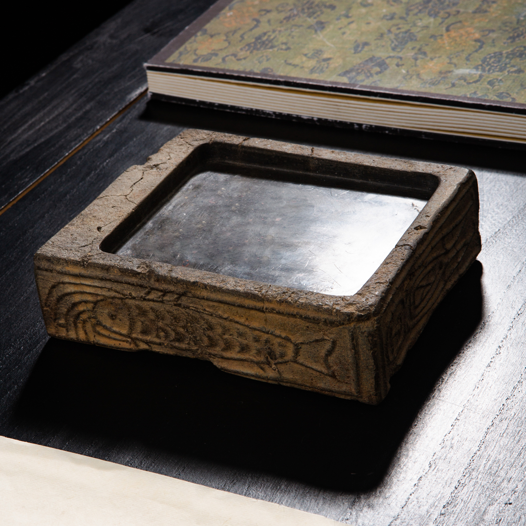 人物鱼纹古砖制砚,图案精美古拙,字口清晰,工艺精细,胎质细腻,每一方都独一无二,十分难得。