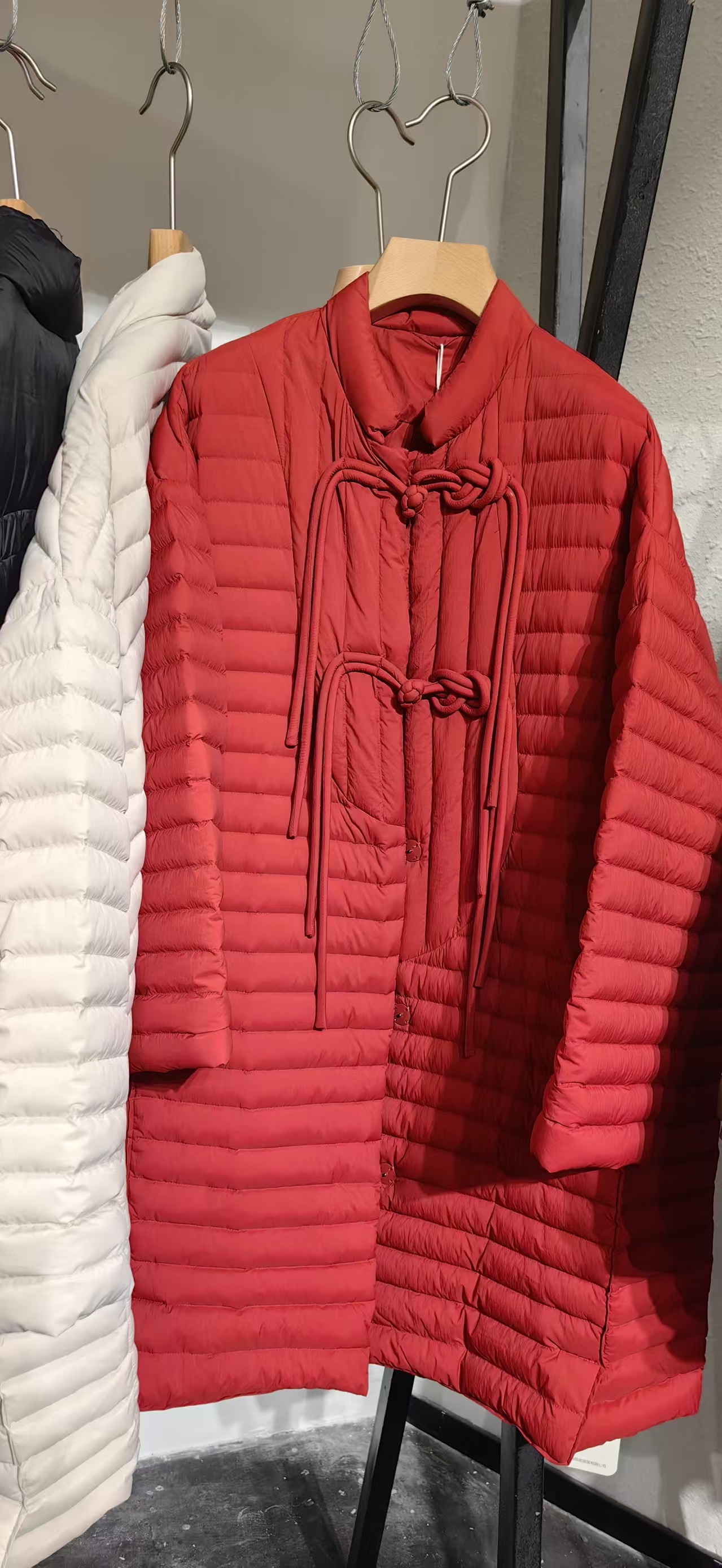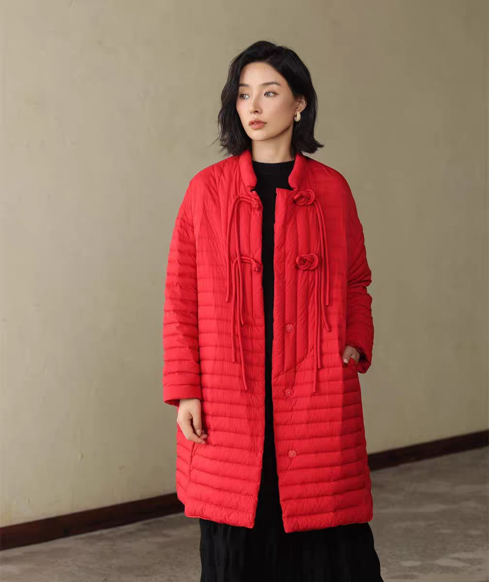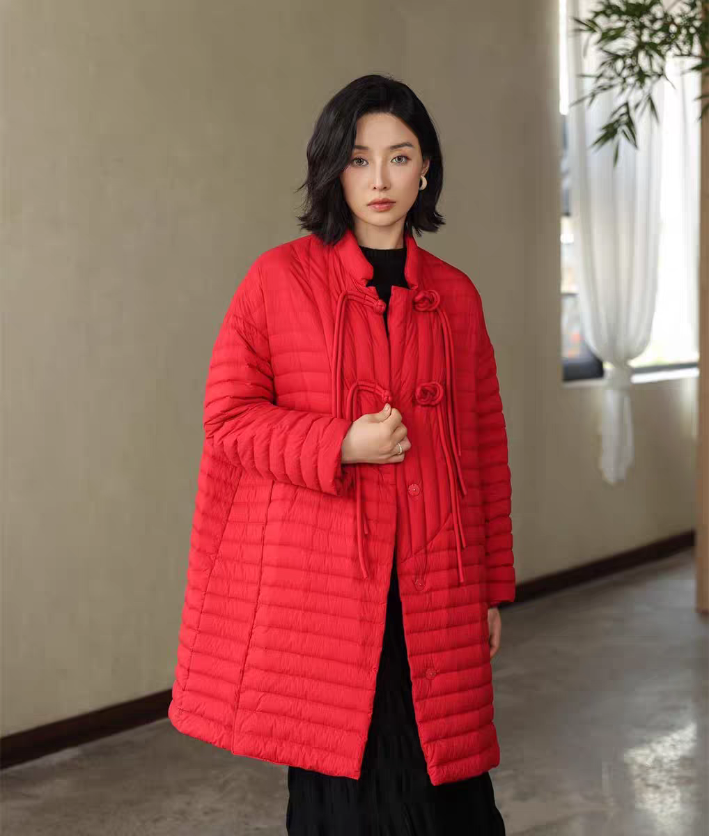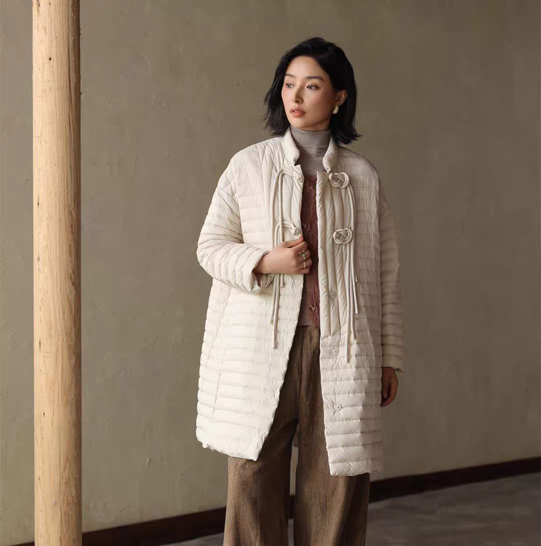 设计师款新中式90白鸭绒羽绒服,重工织锦盘扣手塞就很费时…