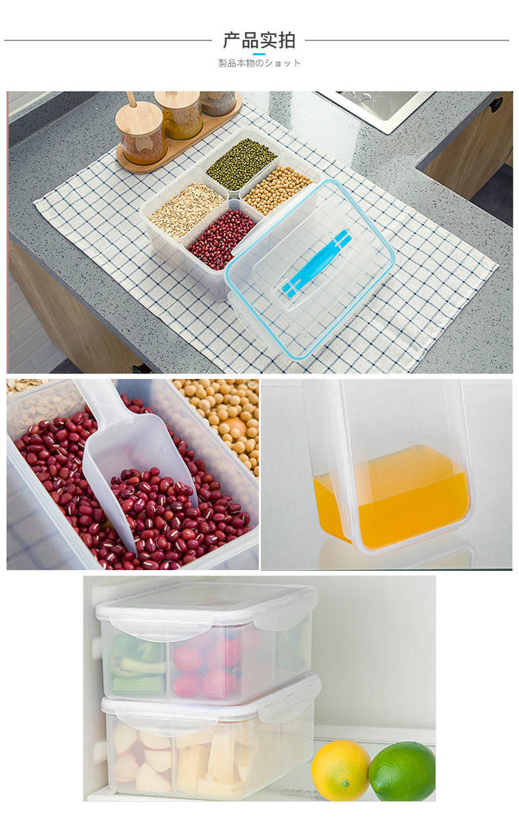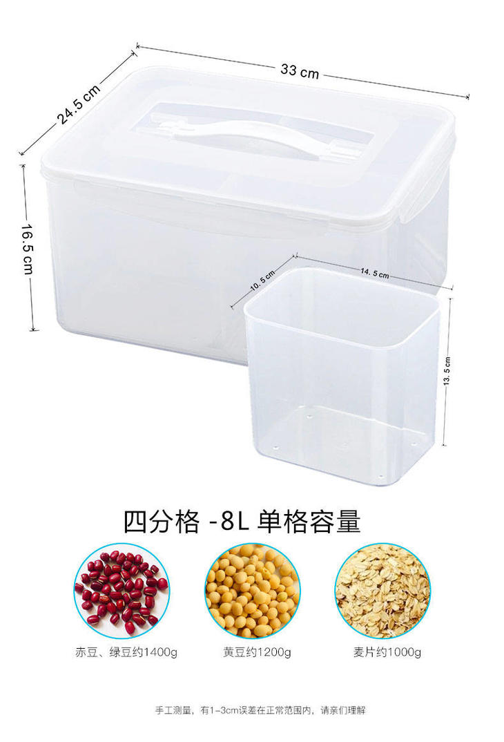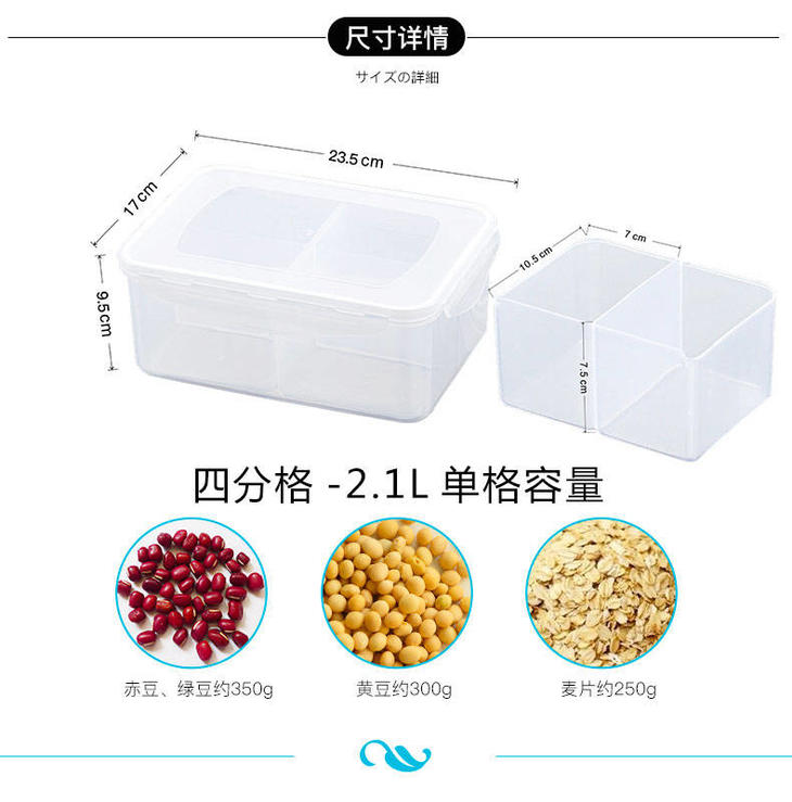 【简约杂粮储物盒】8L/4L/2.1L分格保鲜盒密封储物收纳盒杂粮罐米桶