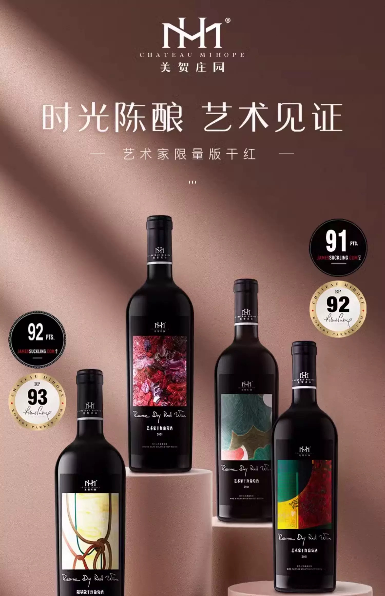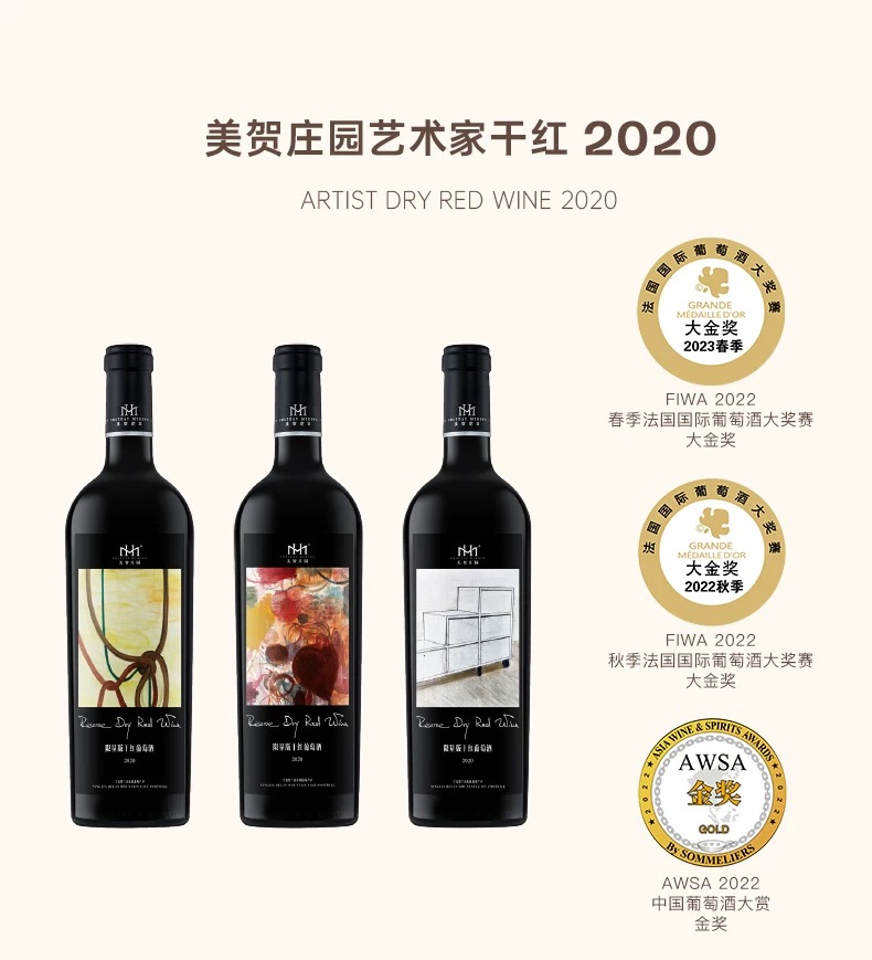 美贺庄园 宁夏贺兰山红葡萄酒赤霞珠干红 艺术家联名限量送礼奢品