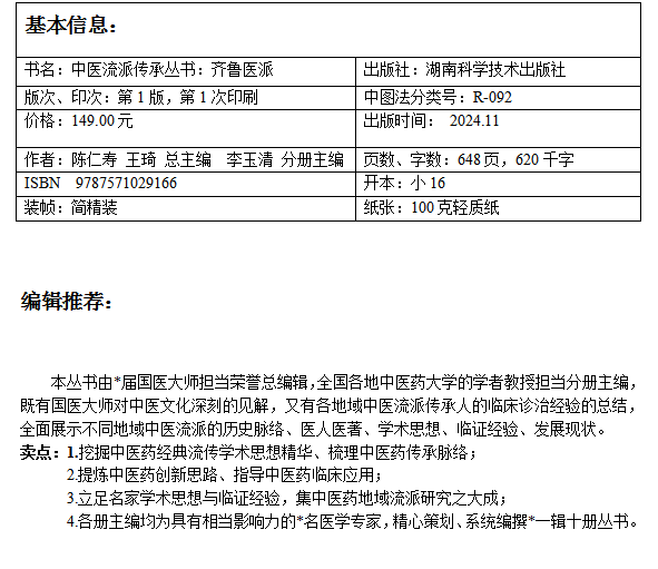 中医流派传承丛书——齐鲁医派 传承地方名医经验 推动中医文化的传播 陈仁寿 王琦 李玉清