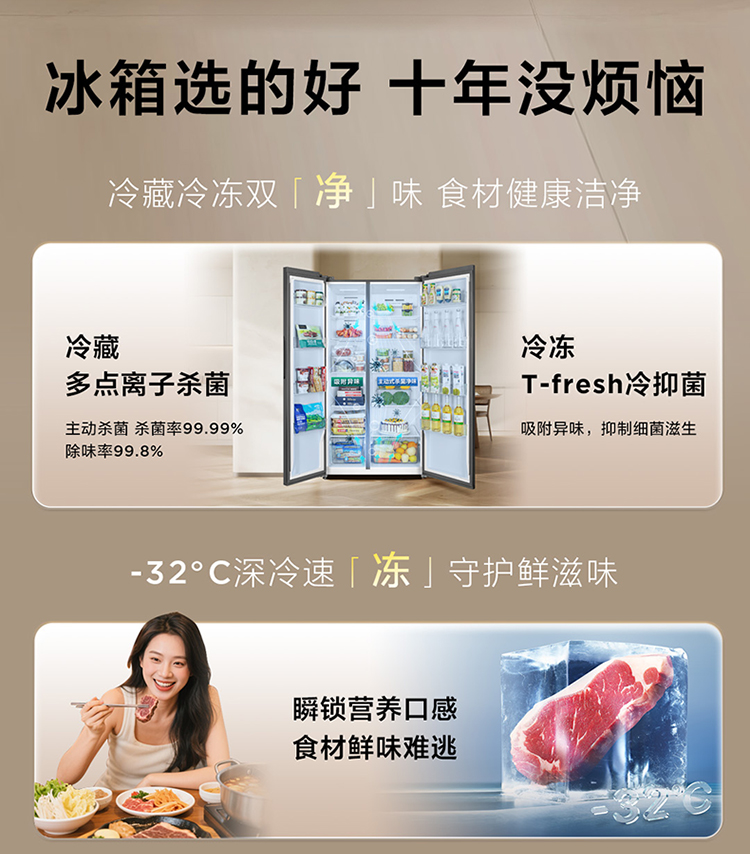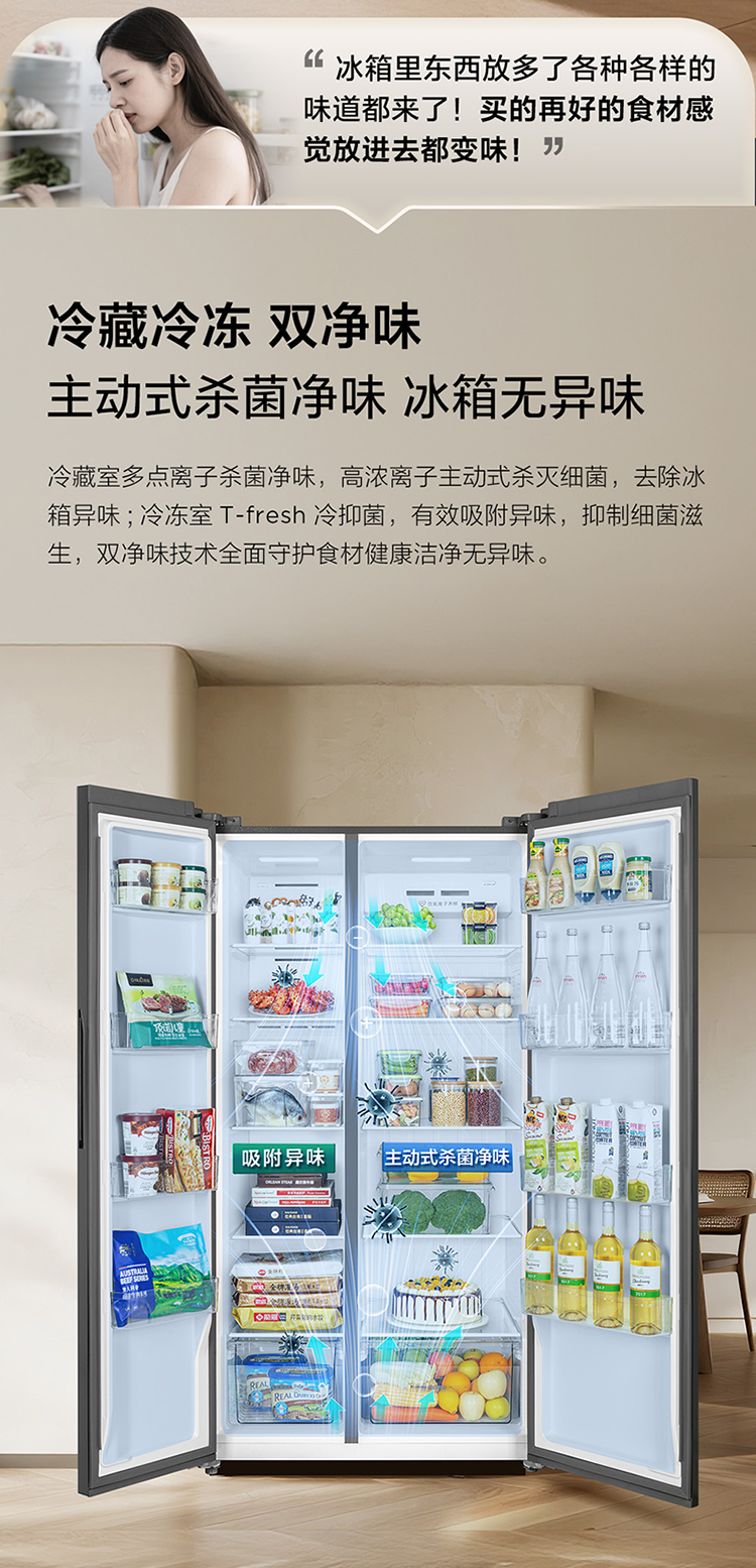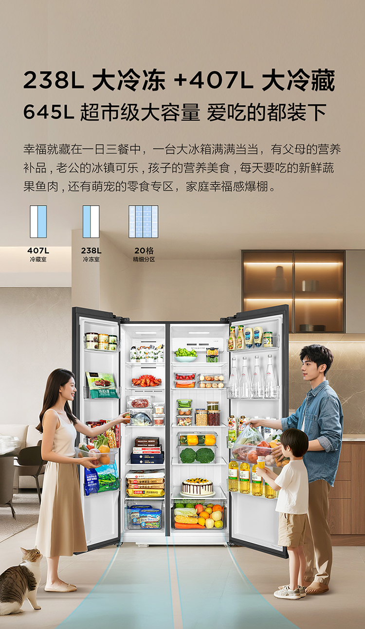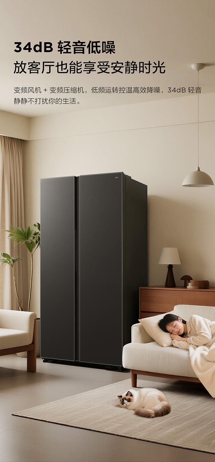 【新品上市】TCL 645升对开门双开门大容量大冷冻冰箱 玻璃门 双净味 双循环 R645V8-S