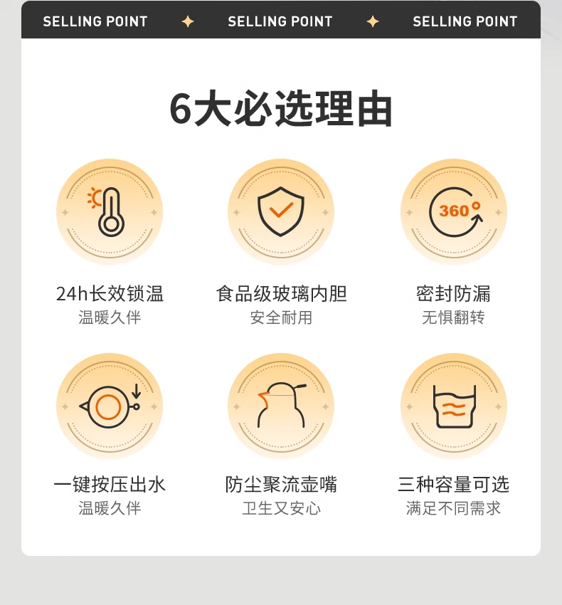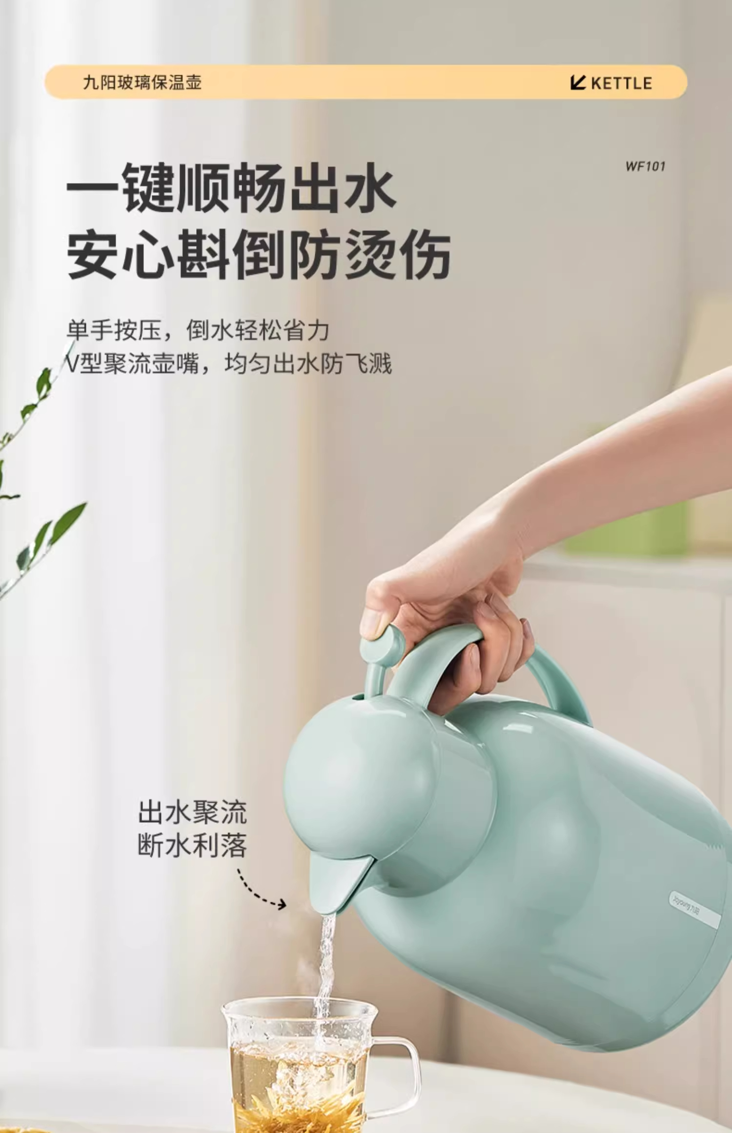 九阳保温壶玻璃内胆大容量家用热水壶保温暖水壶宿舍用热水保温瓶