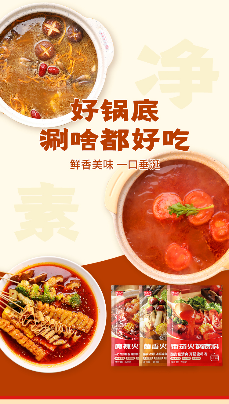 天悦名素 纯素火锅底料 麻辣味 番茄味 菌香味 多种素肉丸子组合