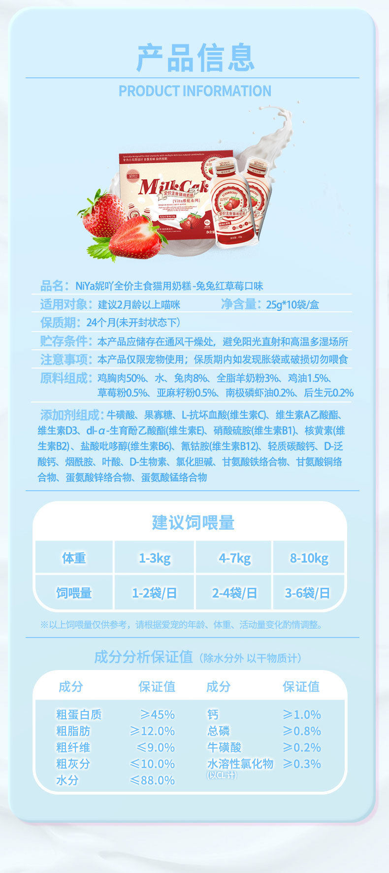 NiYa妮吖全价猫用主食奶糕兔肉草莓流质营养酱成幼猫全阶段高蛋白