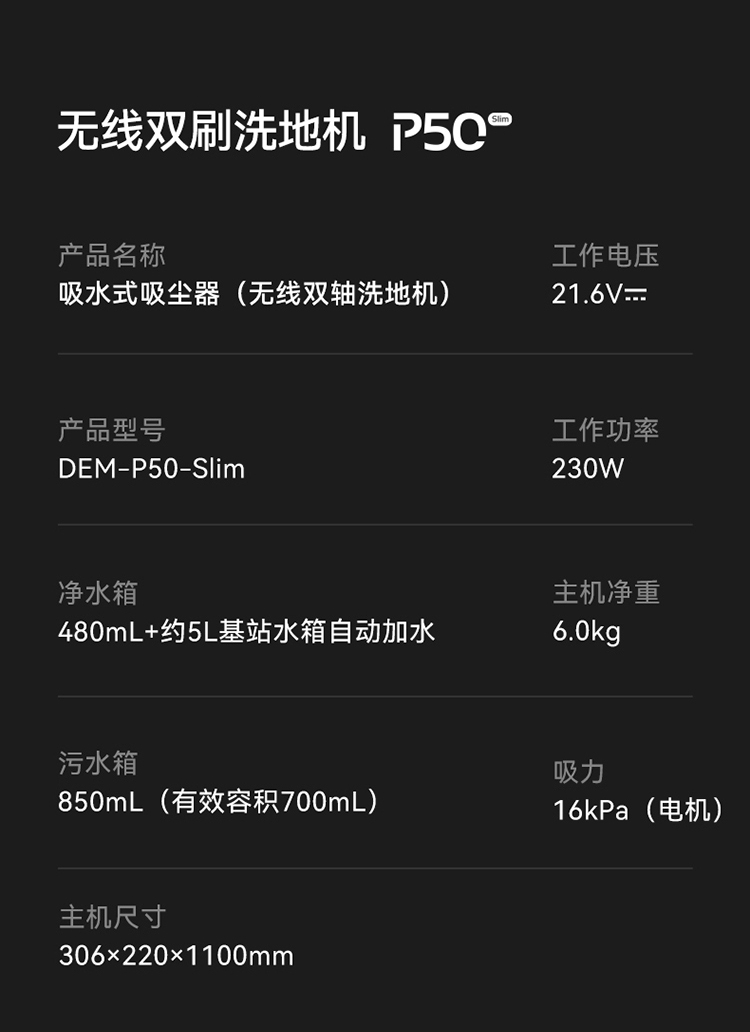 德尔玛家用洗地机洗吸拖一体吸尘器热风烘干 p50-slim