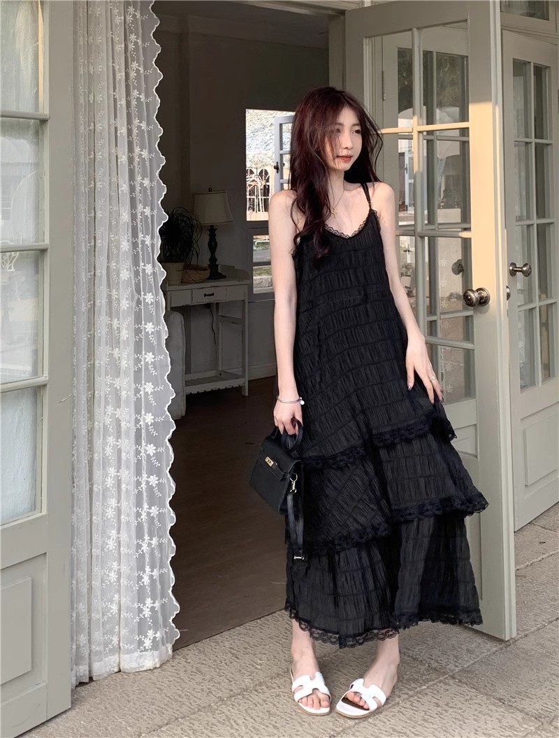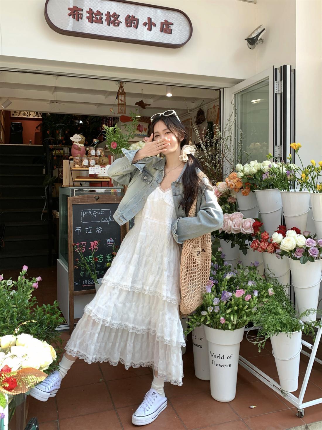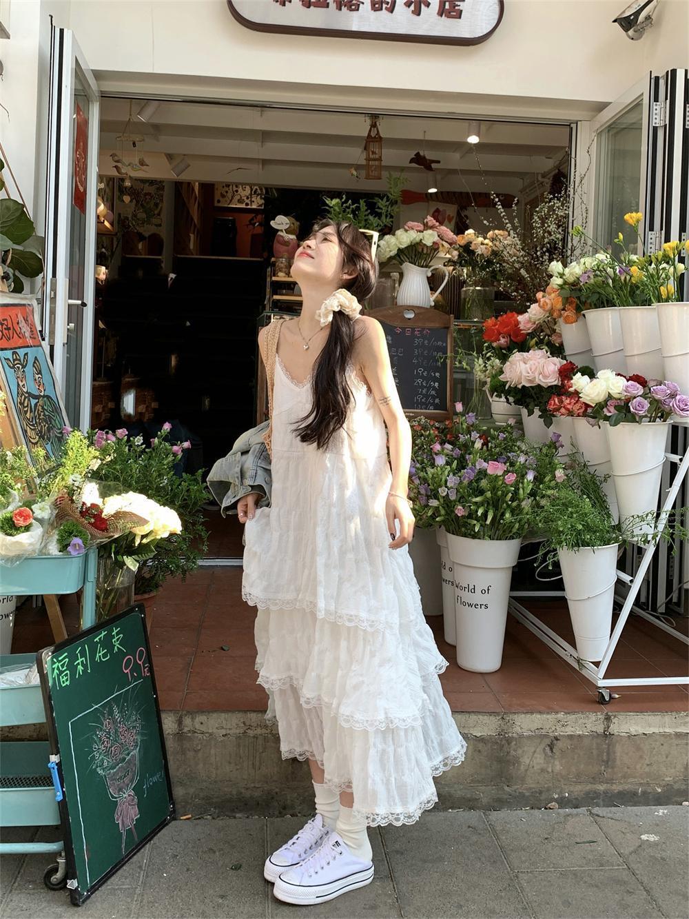 【甜美减龄!法式吊带蛋糕连衣裙】白色女装夏季度假风小个子宽松长裙子