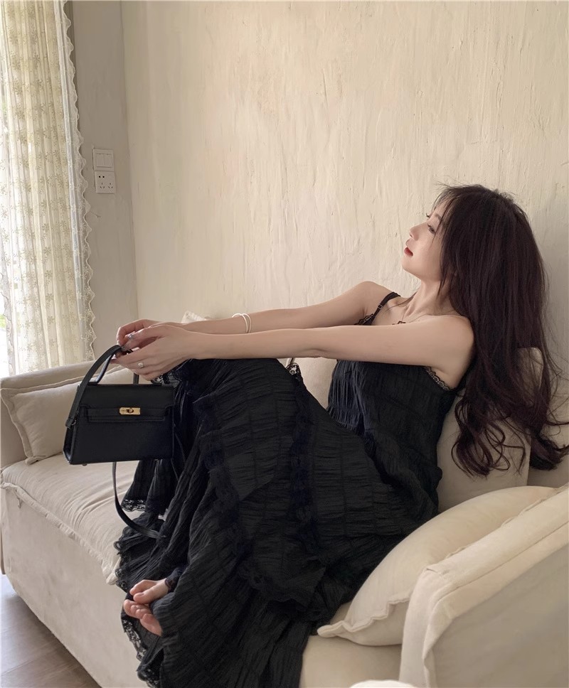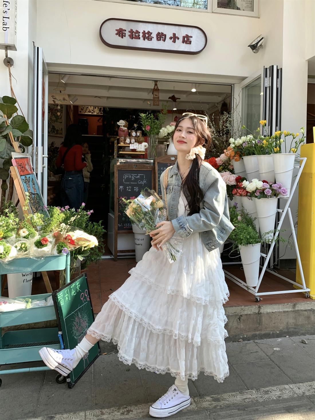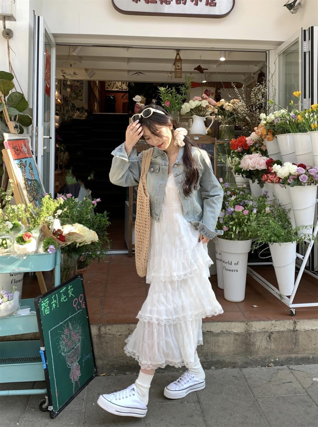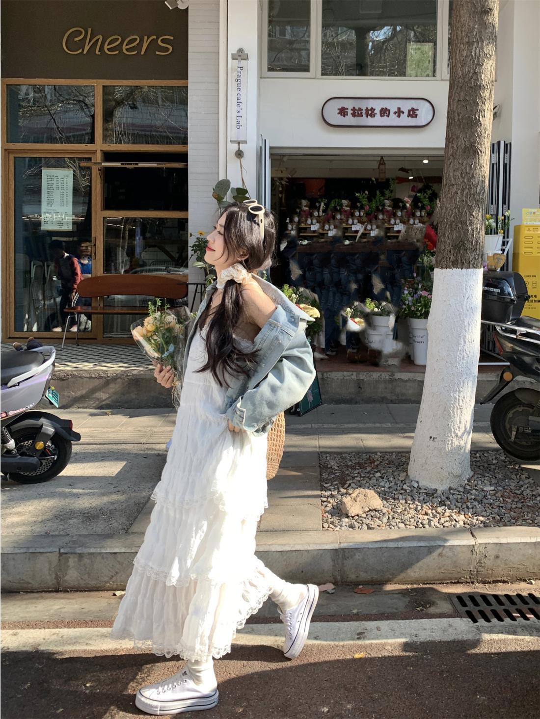 【甜美减龄!法式吊带蛋糕连衣裙】白色女装夏季度假风小个子宽松长裙子