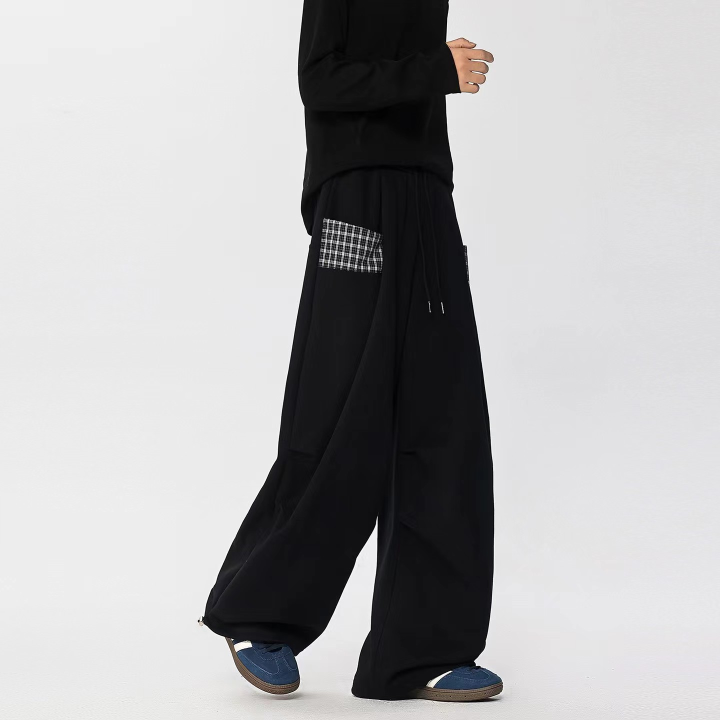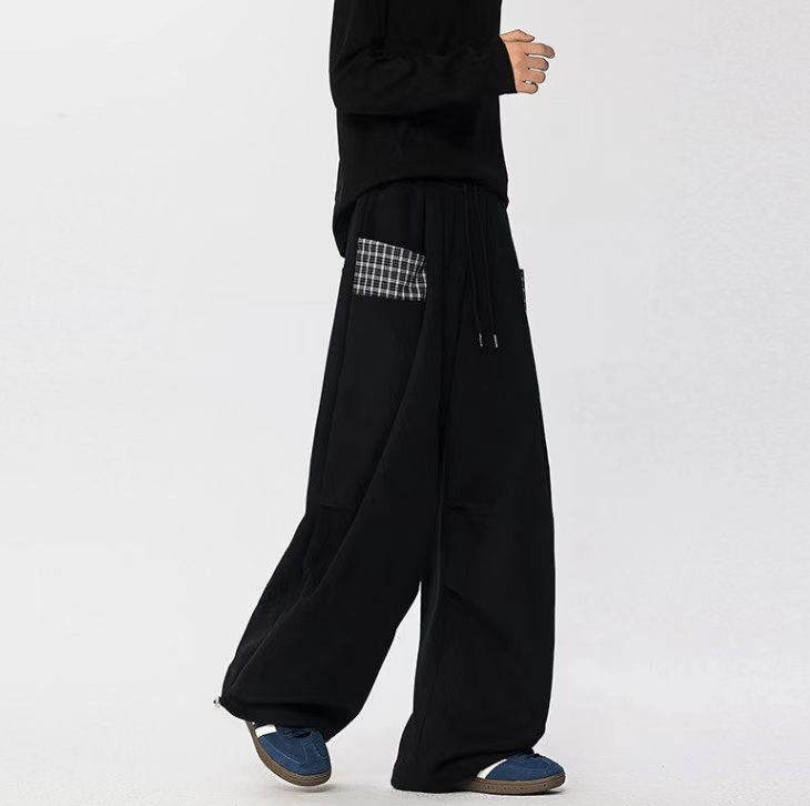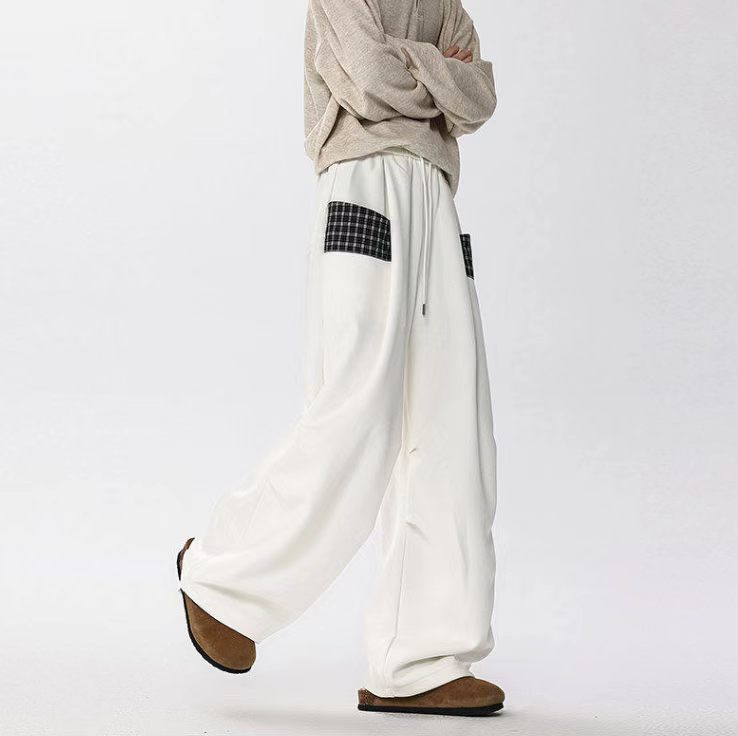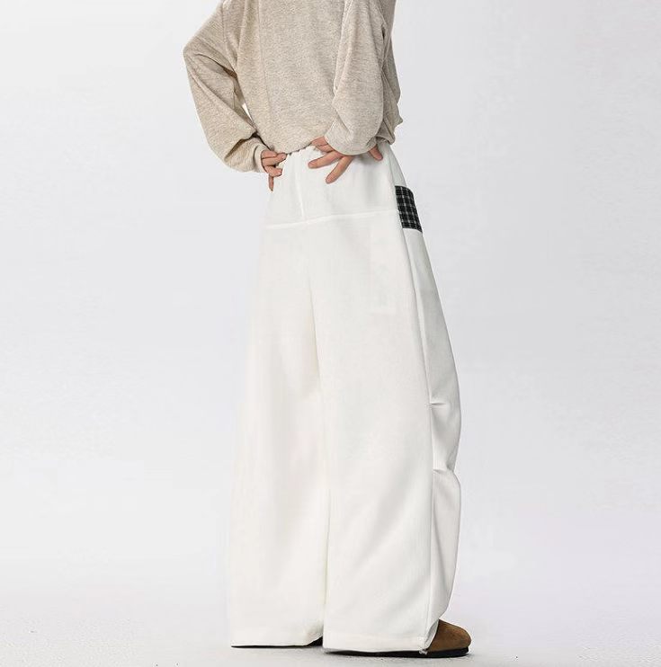 情侣休闲小众拼接格子直筒阔腿裤 ,格子休闲阔腿裤,啥上衣都可以搭主要穿着舒服 !面料非非非常贵的一个色,整体淡淡的灰蒙蒙的感觉,日落黄昏接近夜幕降临那种feel。面料表面做了磨毛工艺,非起球质量问题,柔软度垂感也恰好。