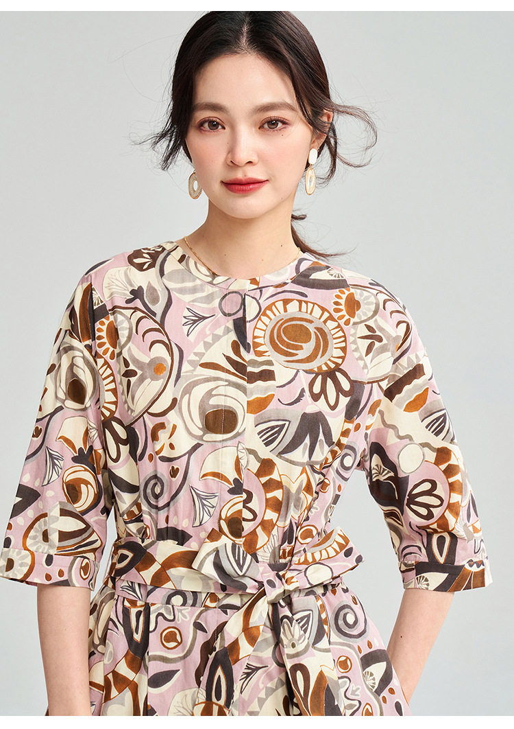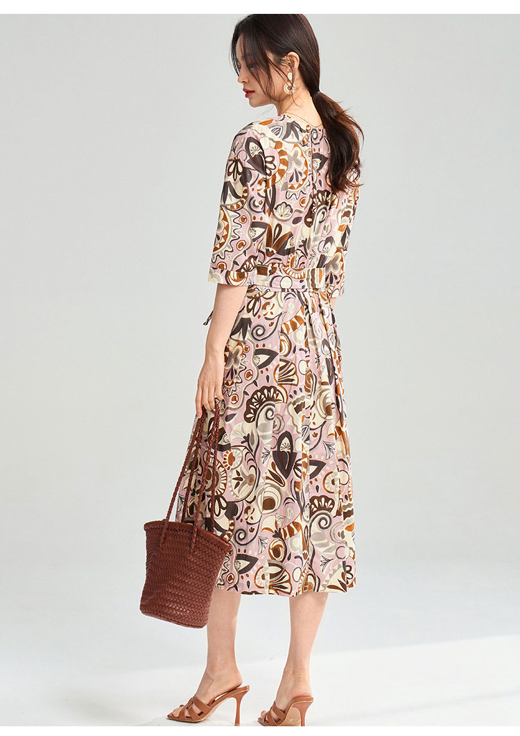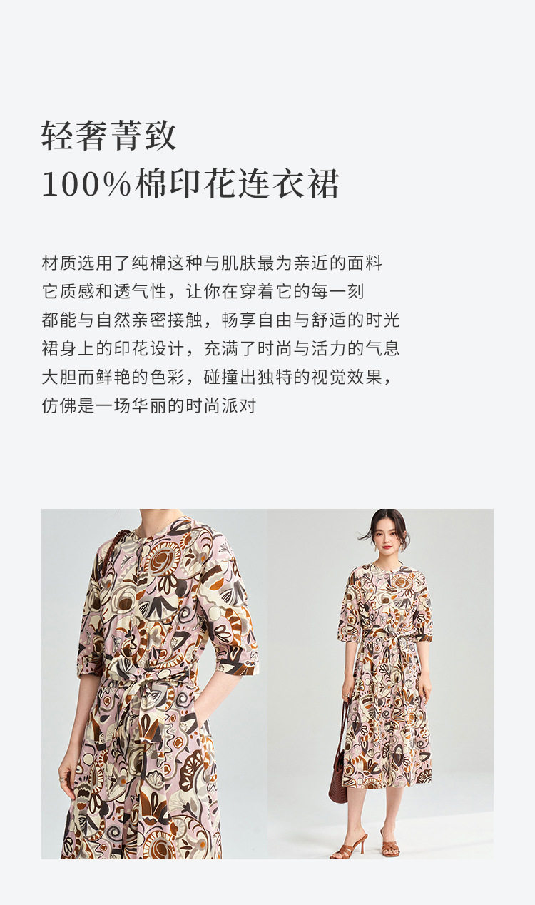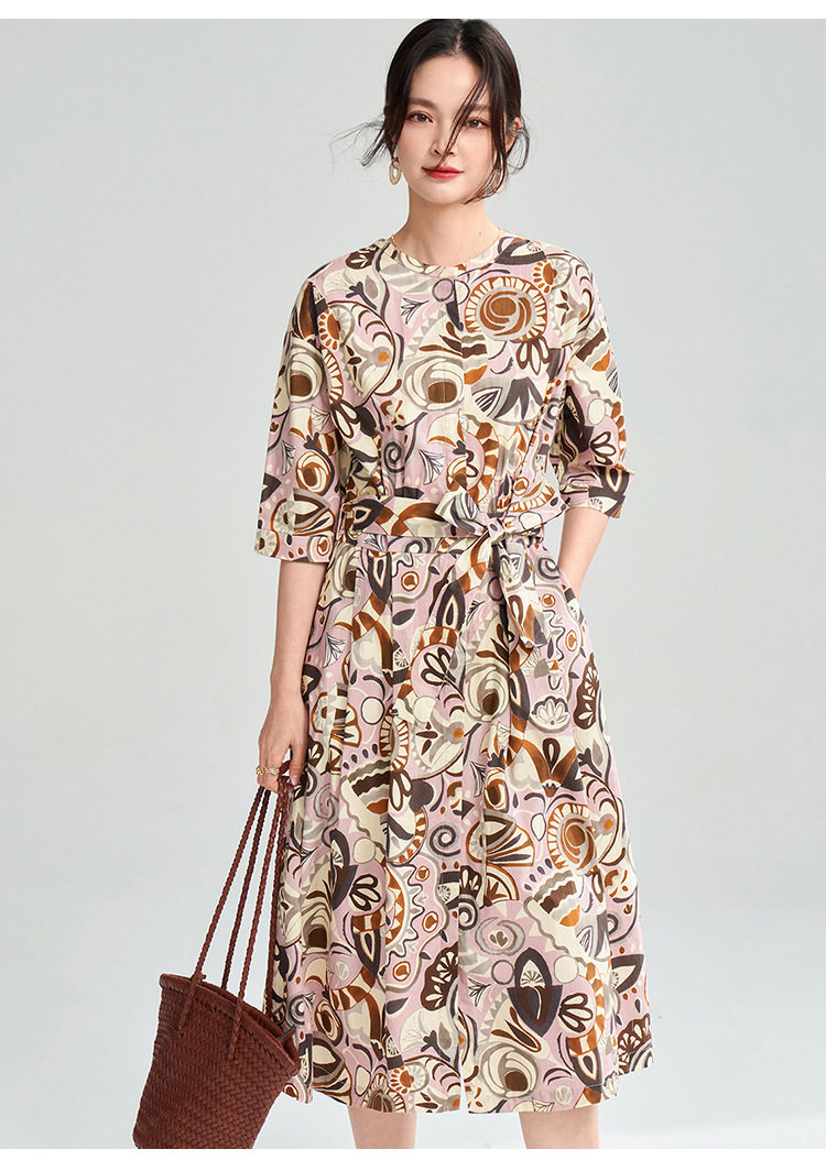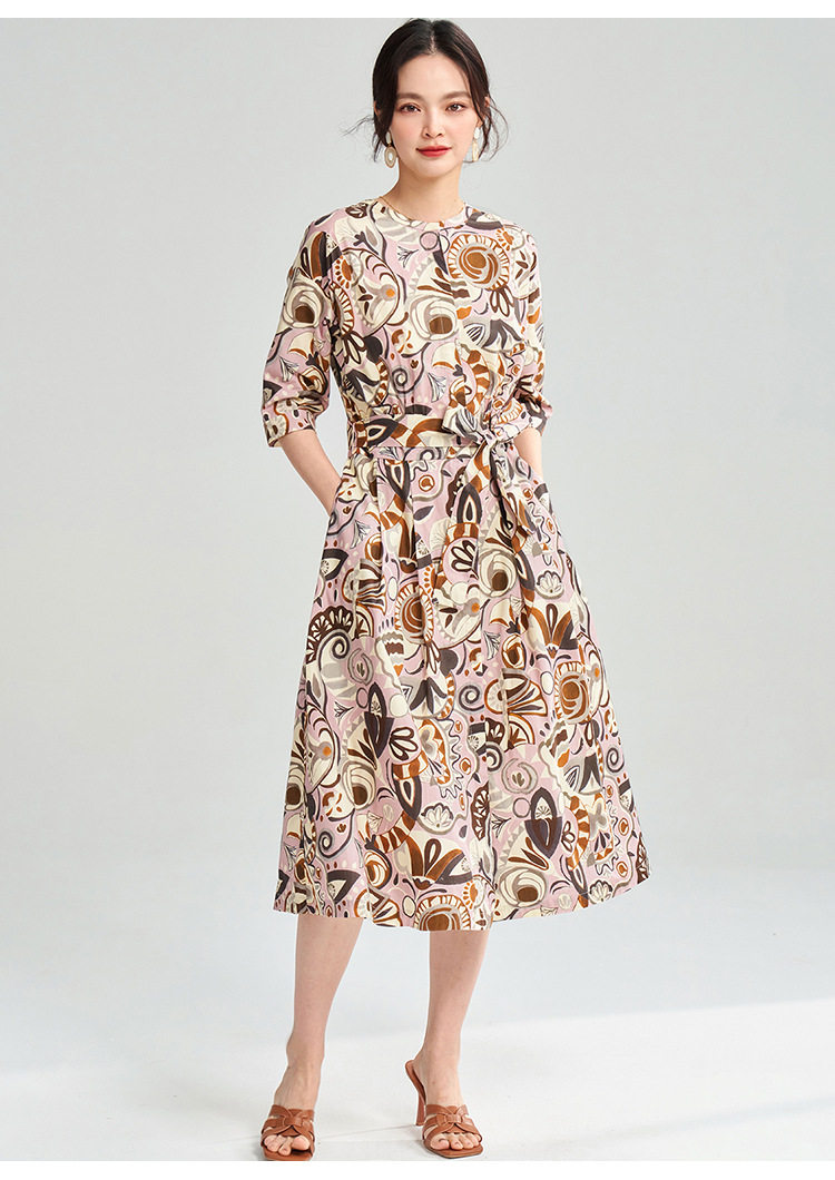 25春夏复古艺术花卉纯棉印花收腰系带中长连衣裙25032 商品图1