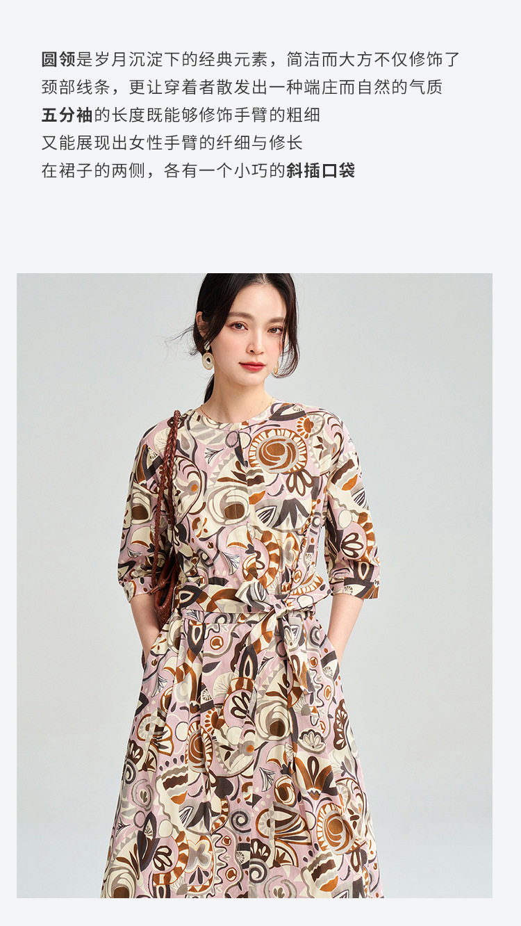25春夏复古艺术花卉纯棉印花收腰系带中长连衣裙25032 商品图3