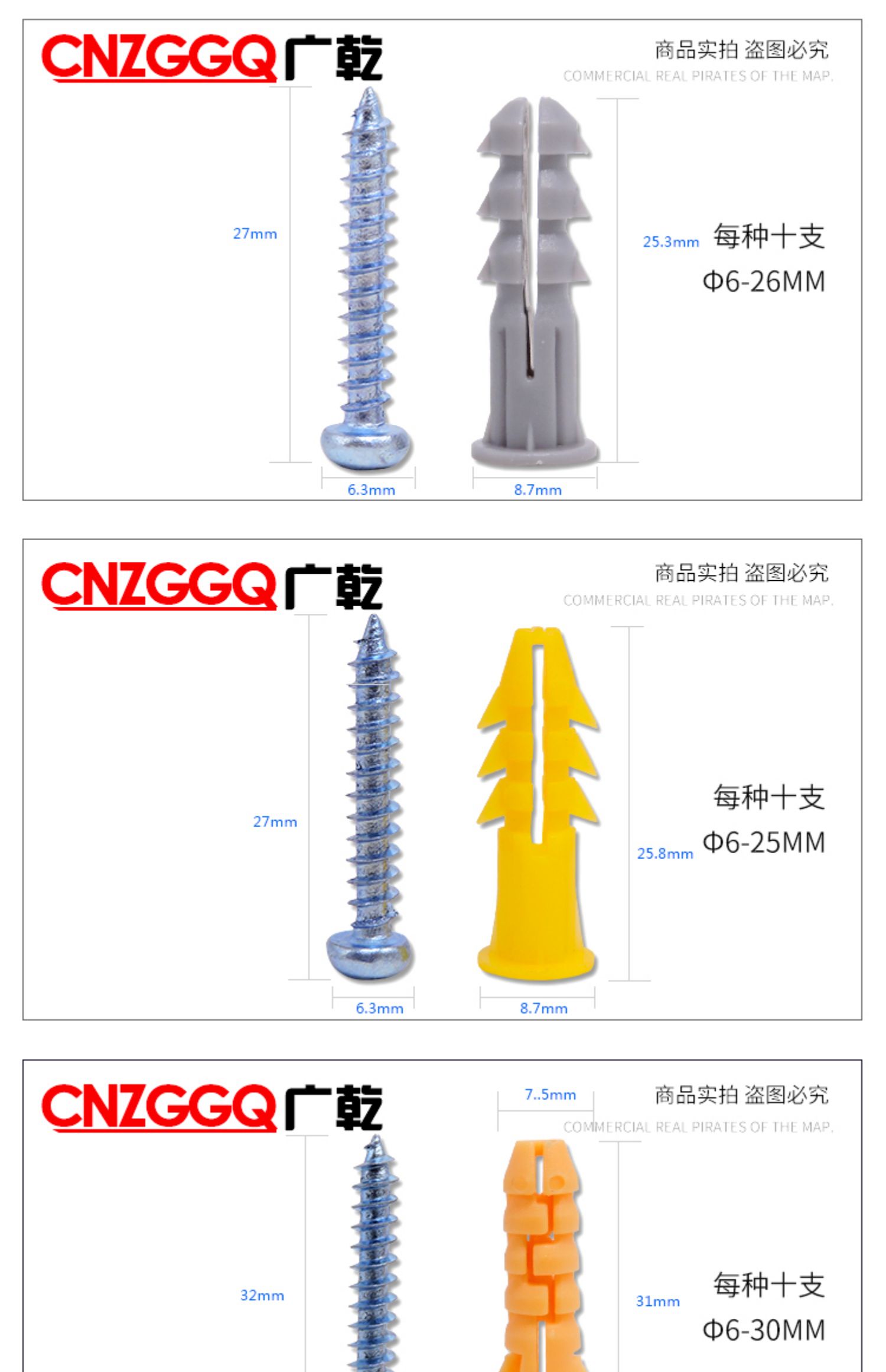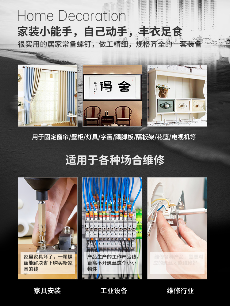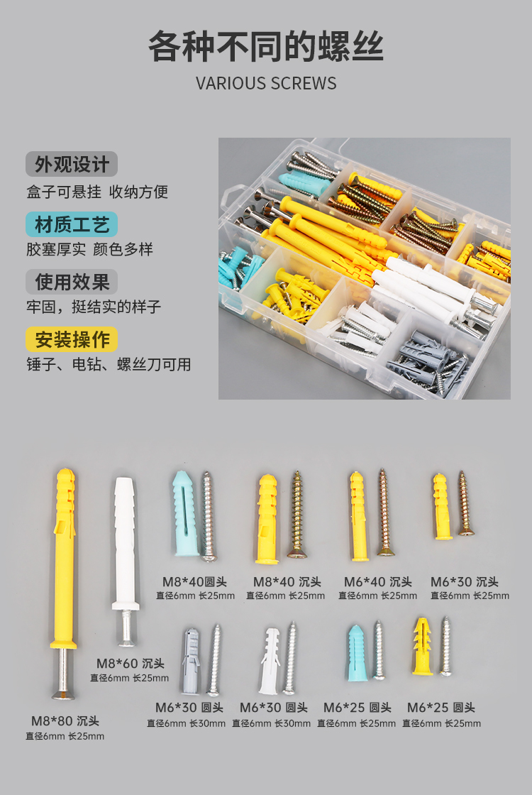 【螺栓套装】家用不锈钢自攻螺丝套装 200只混装加长膨胀螺丝套装钉子膨胀管栓
