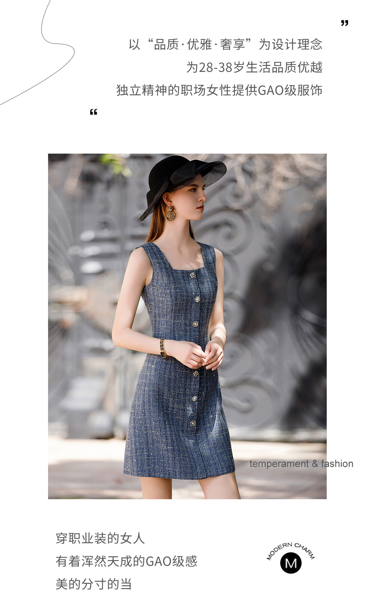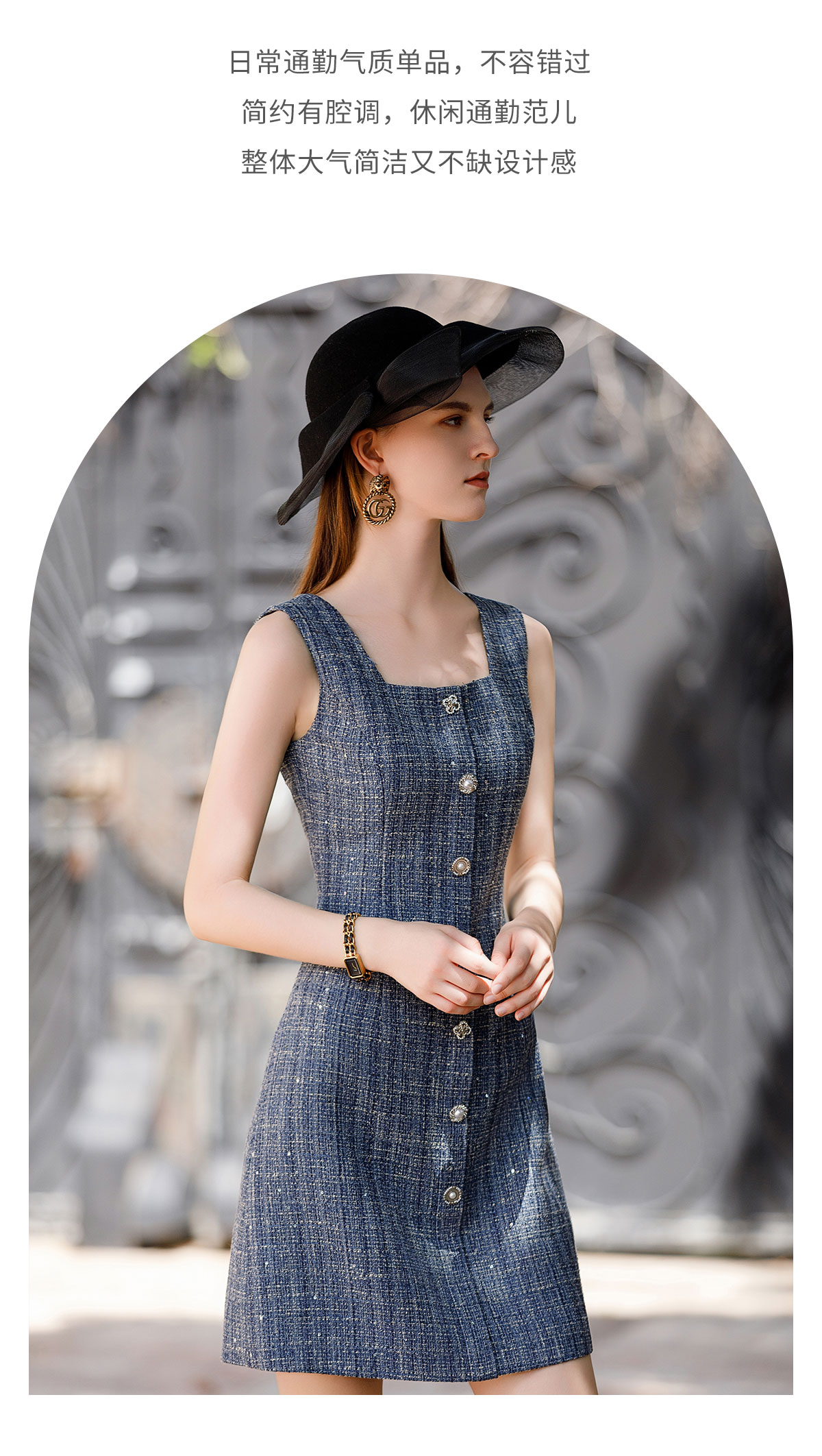 AD金扣无袖气质小香风粗花呢连衣裙2023秋季新款名媛千金风背心裙