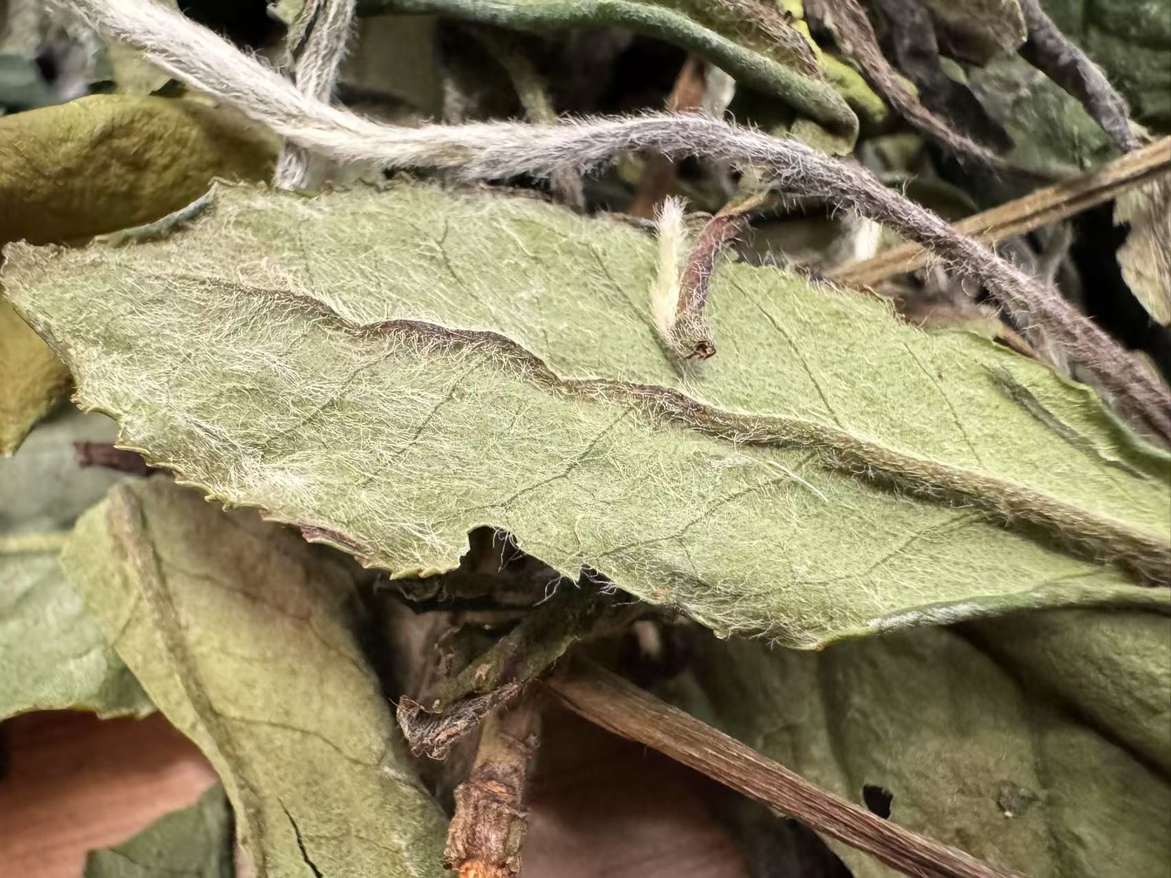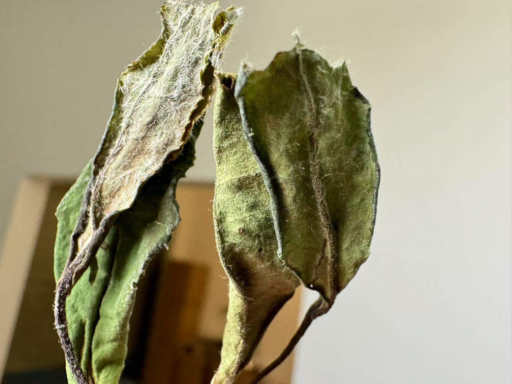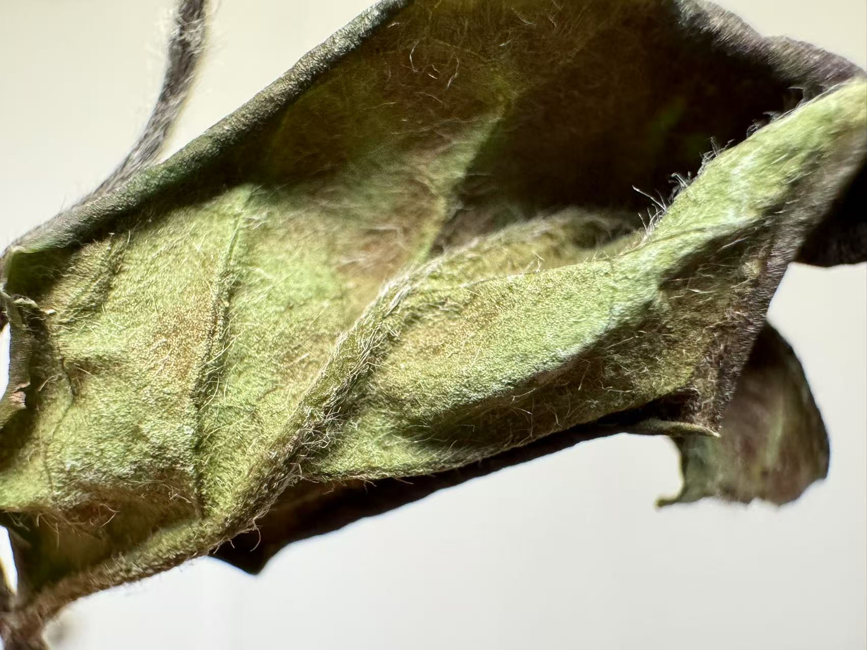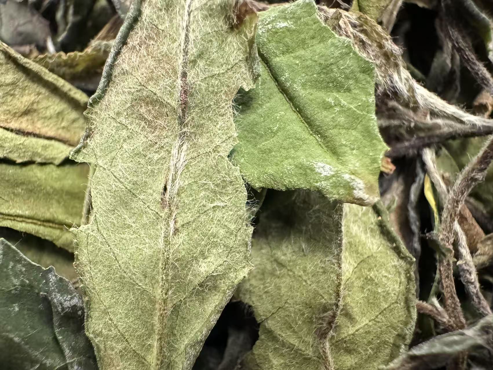 荒龄很大,即使是叶子,也是有很多茶毛,大家看细节:杏色的感觉,高级感很足,工艺非常到位。